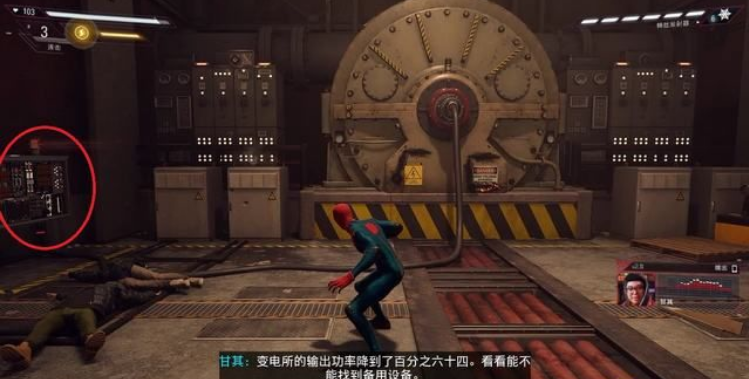 将出现的敌人击败后,对发电机旁的备用系统使用毒液拳。