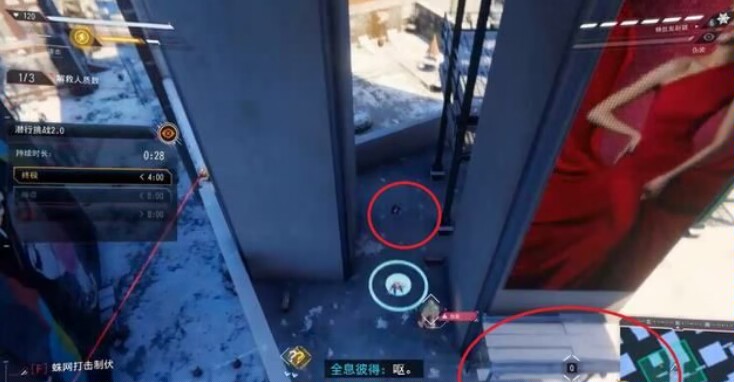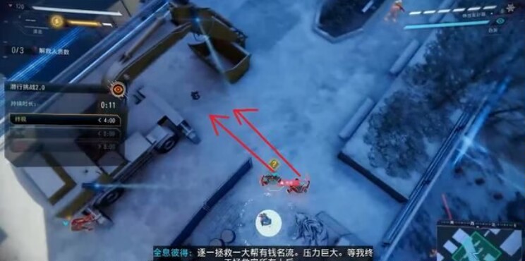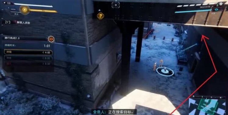 用脚手架击倒敌人后,趁着敌人过去查看的空档隐身救人即可完成。
