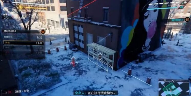 转身后,利用远处的装置吸引敌人注意力,再次隐身救人。