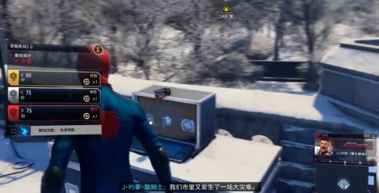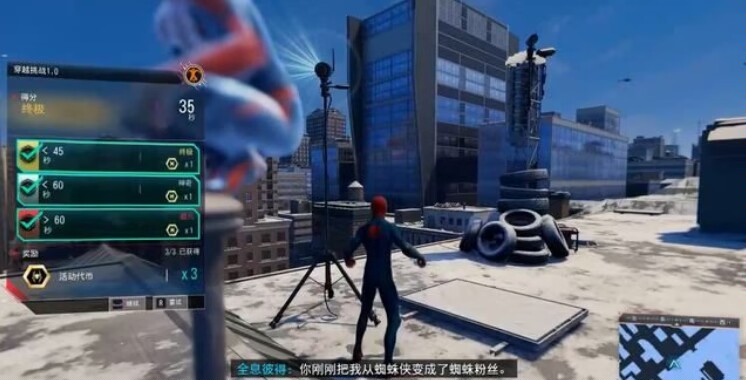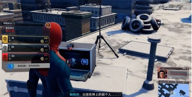 之后转过两个弯,彼得语音提醒“爬墙”的时候,按下空格飞到墙上后普通跑动即可快速通过该区域。