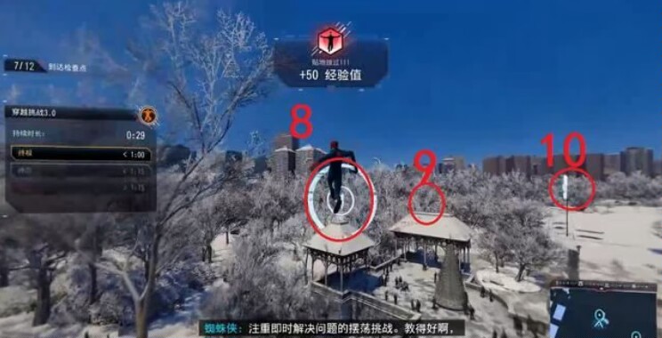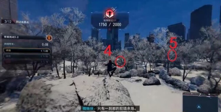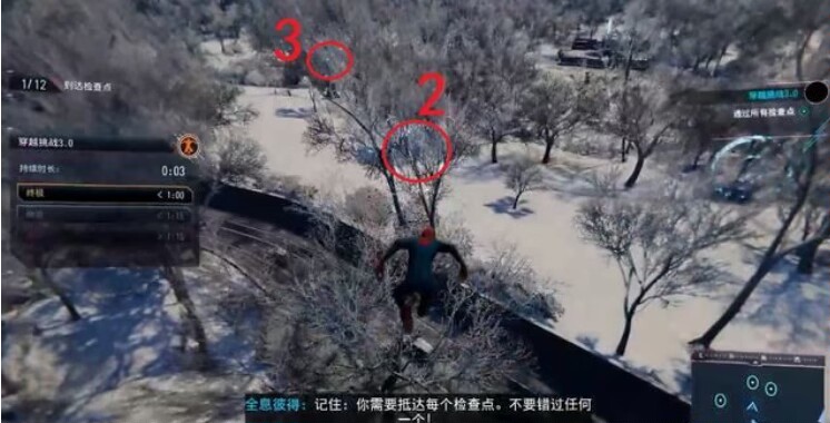 需要注意的是,此挑战会需要转移位置,在赶路的过程中留意下图中标记的红圈,那些则是此后需要穿过的检查点。