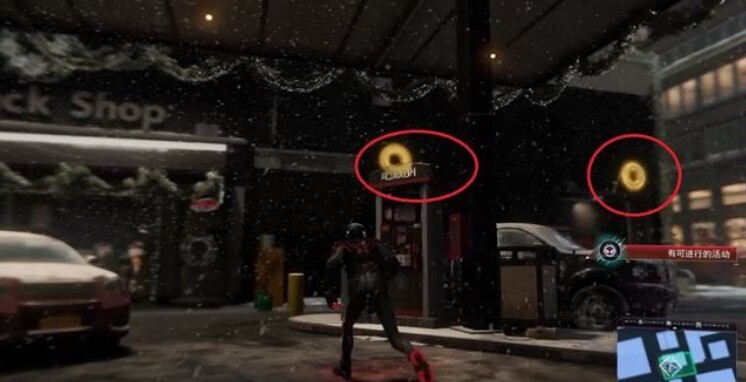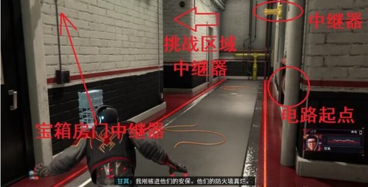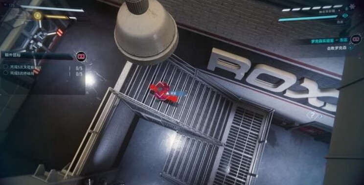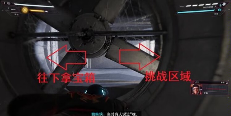 抵达目标点周边的加油站后,利用蛛丝摇动齿轮,发射蛛丝固定后可以进入下方的区域。