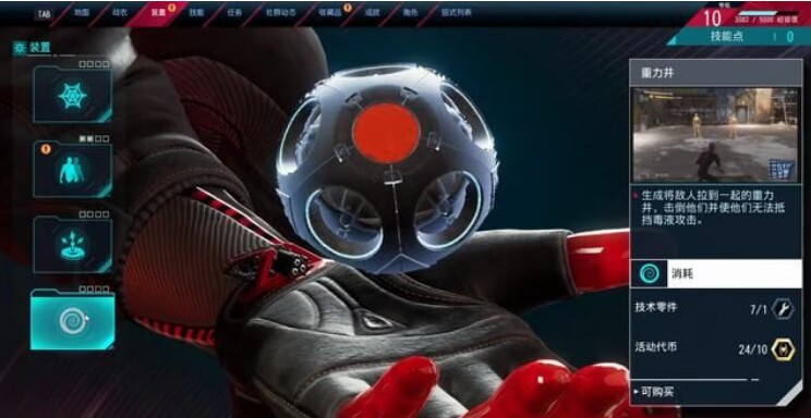 重力井装置则需要先在菜单的“装置”分页中解锁后使用。