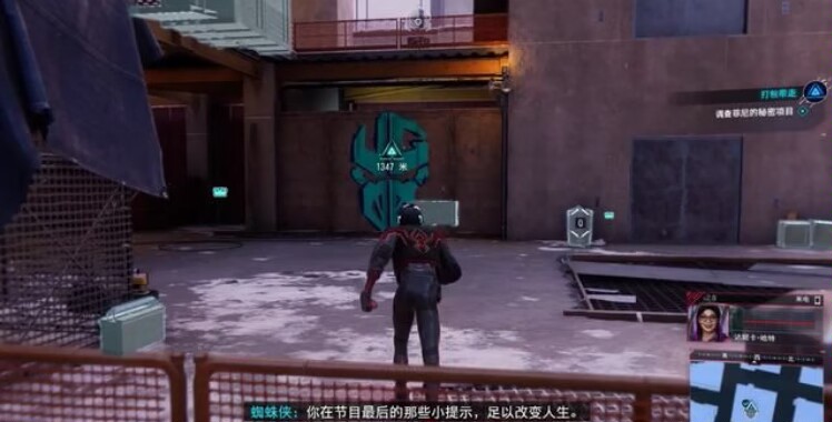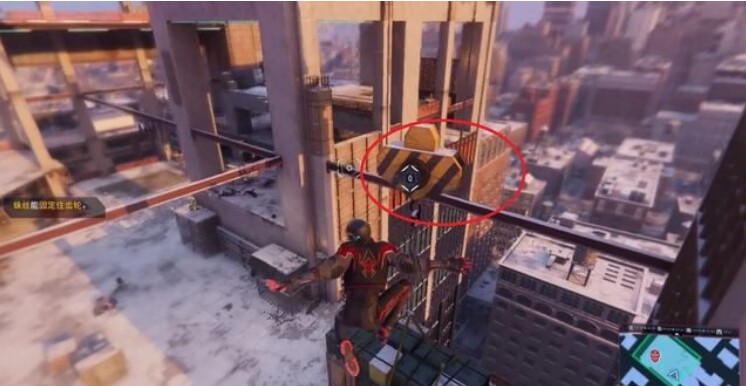 在信号干扰器的所在区域,将脚手架拉倒后可以爬墙前往宝箱所在地。