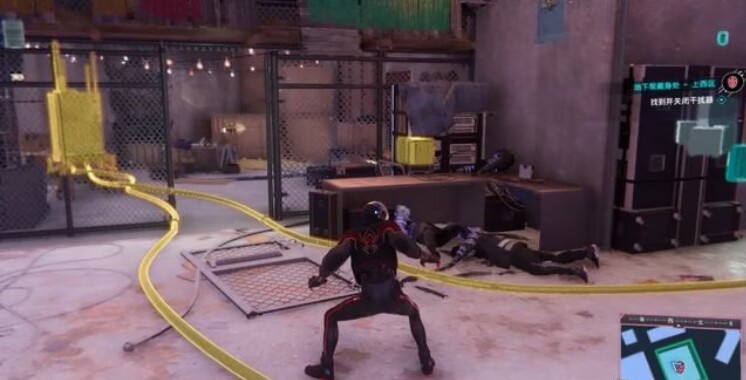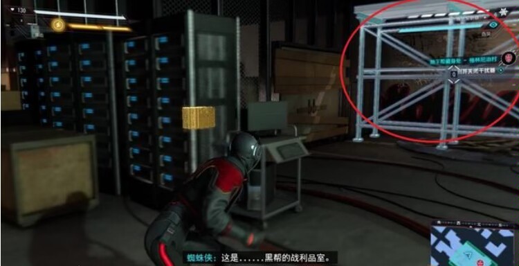 清理敌人后,顺着电线找到下图位置,将墙壁拉垮即可找到干扰器。