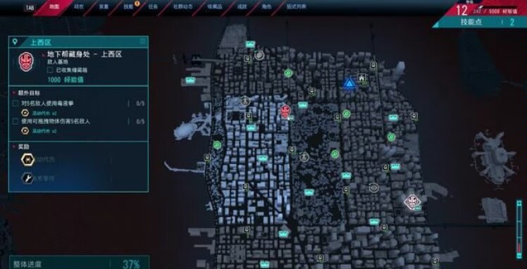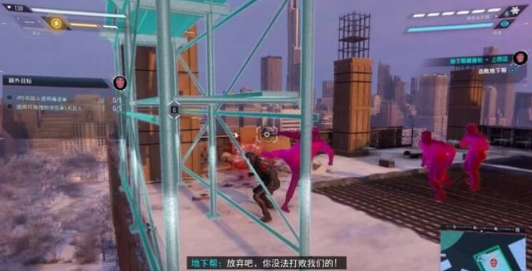 本挑战的额外目标为“隐身时累计制服5名敌人”和“用毒液跳跃累计击飞12名敌人”。