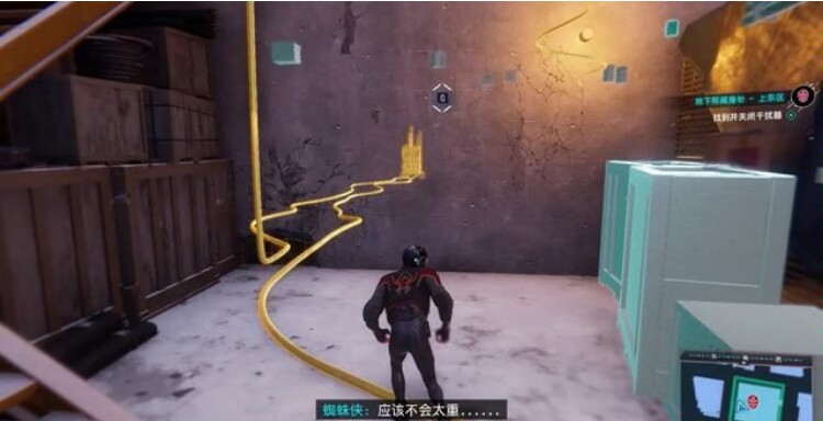 准备离开时会被困在里面,将下图标记的箱子击破后连接电梯口的电线即可离开。