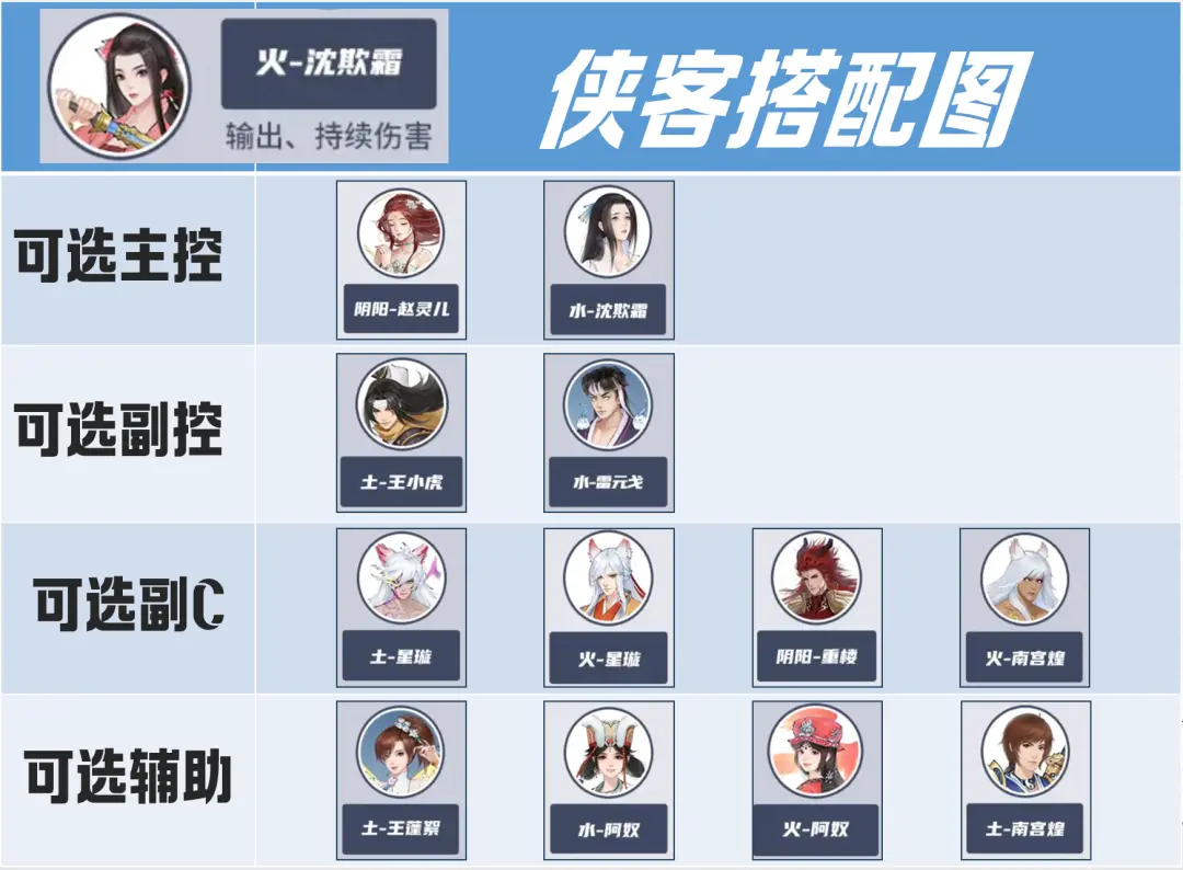 ▎侠客阵容搭配首先来具体聊一聊不同的主C的侠客搭配选择。