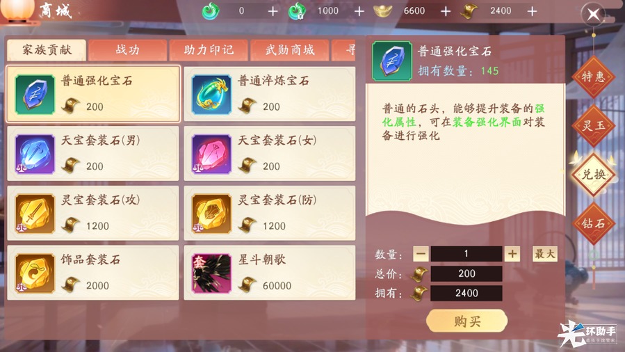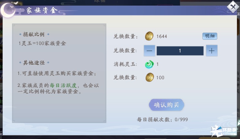 关于家族升级需要额外说明一下,家族升级后可以提升家族人数,所以第一天如果有足够的家族资金最好用来升级家族,其他的需要消耗家族资金的活动(后面会详细说明),第一天可以先不急着做,因为家族资金除了用灵玉来兑换,家族人员每天获得活跃值时也会获得一些家族资金,这个是家族资金获取得主要来源。