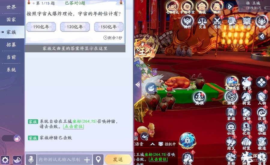 在宴会期间还有答题活动,总共有15道题,如果不知道答案的话可以参考家族文曲星或者其他人的答案。