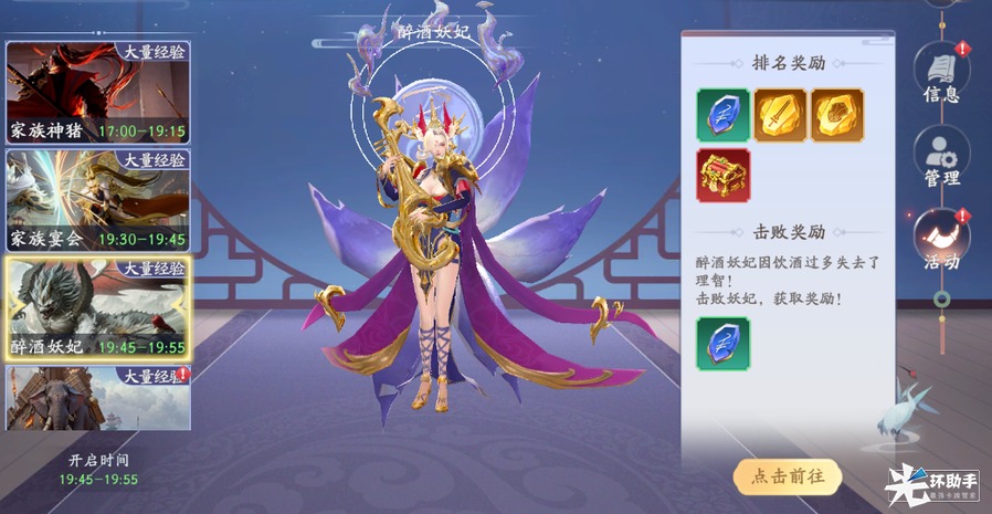 该活动就紧接在家族宴会之后,需要家族成员一起击败boss,个人奖励分为排名奖励和击败奖励,除此之外还将触发拍卖,大家可以去竞拍所需道具并等待分红。