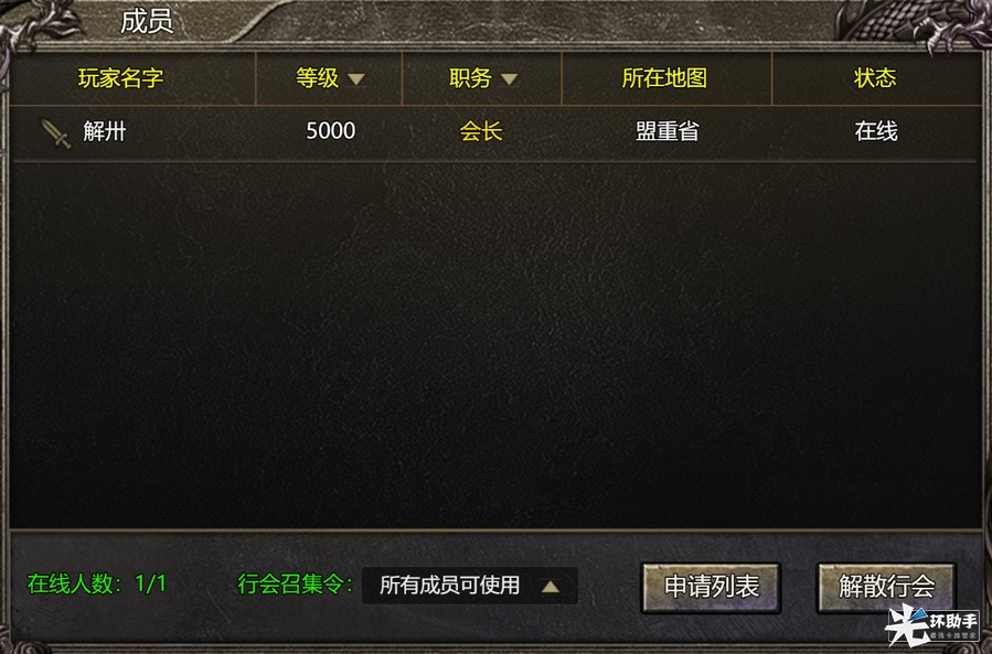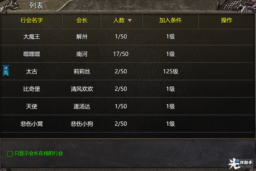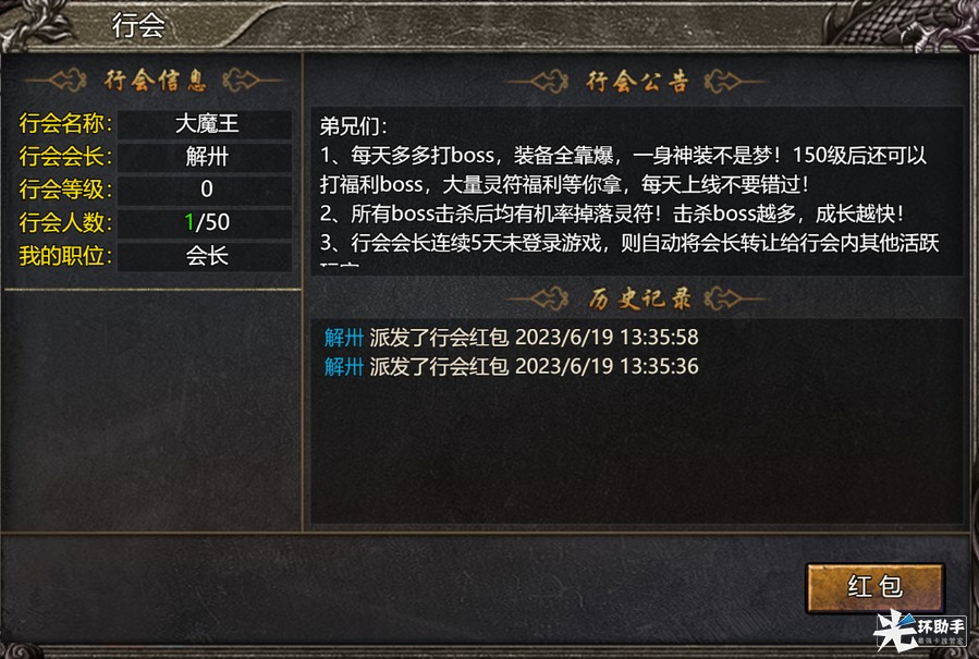 最直观的显示,我们可以看到目前行会名字、会长和公告信息,在这个页面,会长可以进行行会公告的编辑。