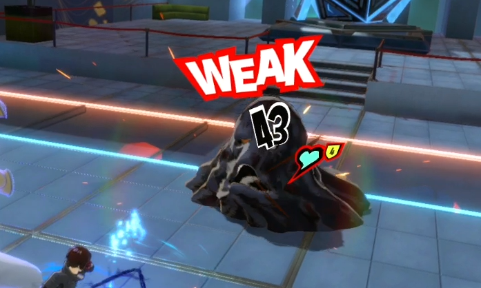 而且《P5X》中还新加入了一个名为“倒地值”的设定,也就是我们在战斗画面里看到血量旁那个金色的小盾牌。它有点类似于护盾的设计,在受到倒地攻击的时候会优先消耗“倒地值”次数,没有金色小护盾的情况下才能对双方角色造成击倒,该数值每场战斗会重置。