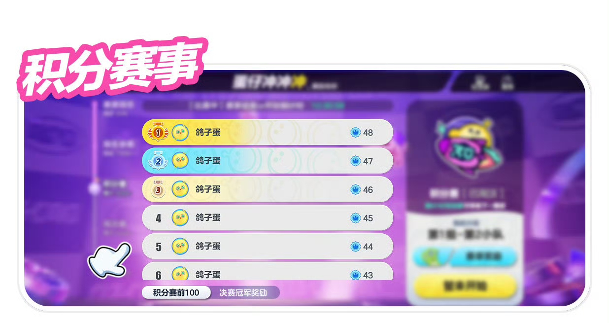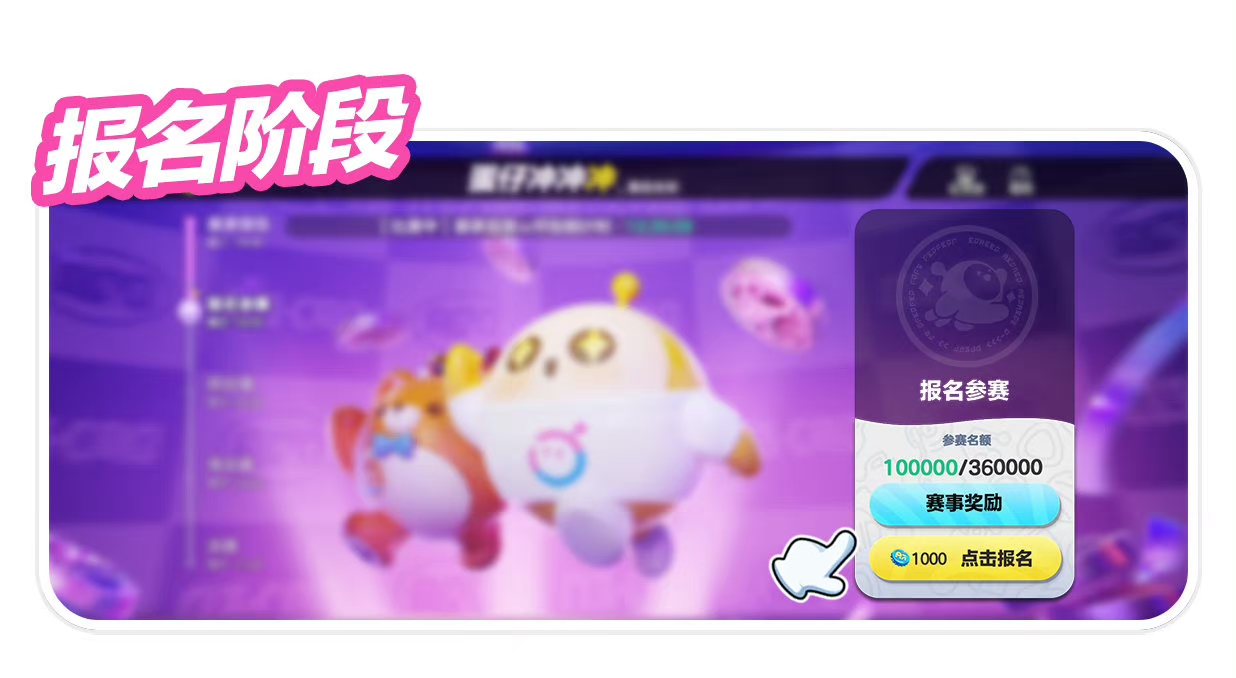 每周五18:00;19:00;20:00,赛事报名将错峰开启,在三个时段各有12万个名额,5级以上且达鹅蛋及以上蛋位的蛋仔,成功报名即可获取专属参赛卡~