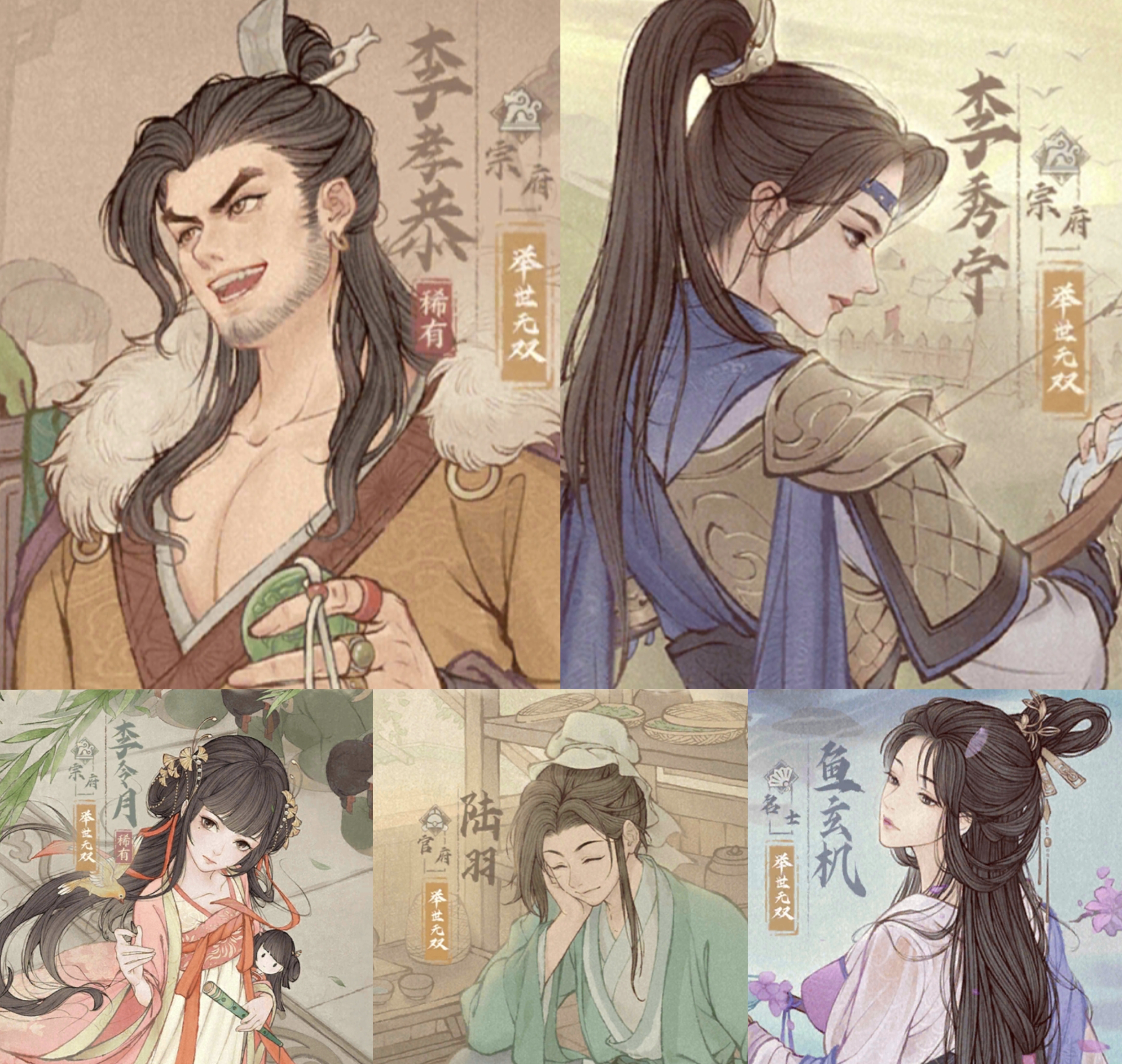 ①李孝恭+李秀宁(副c)+李令月(主c)+鱼玄机+陆羽。
