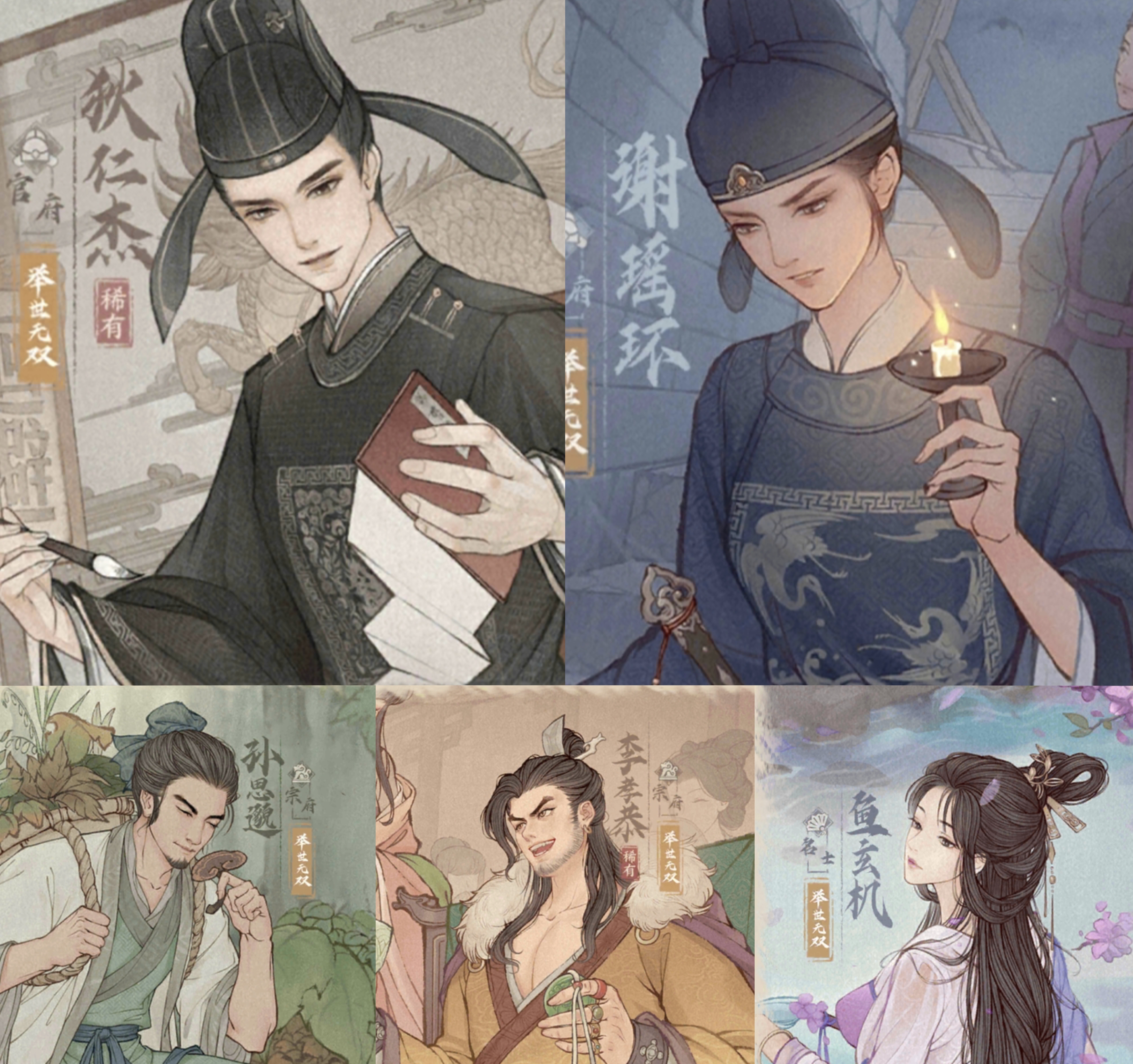 ①李孝恭+狄仁杰(主c)+谢瑶环(副c)+鱼玄机(过渡)+孙思邈。