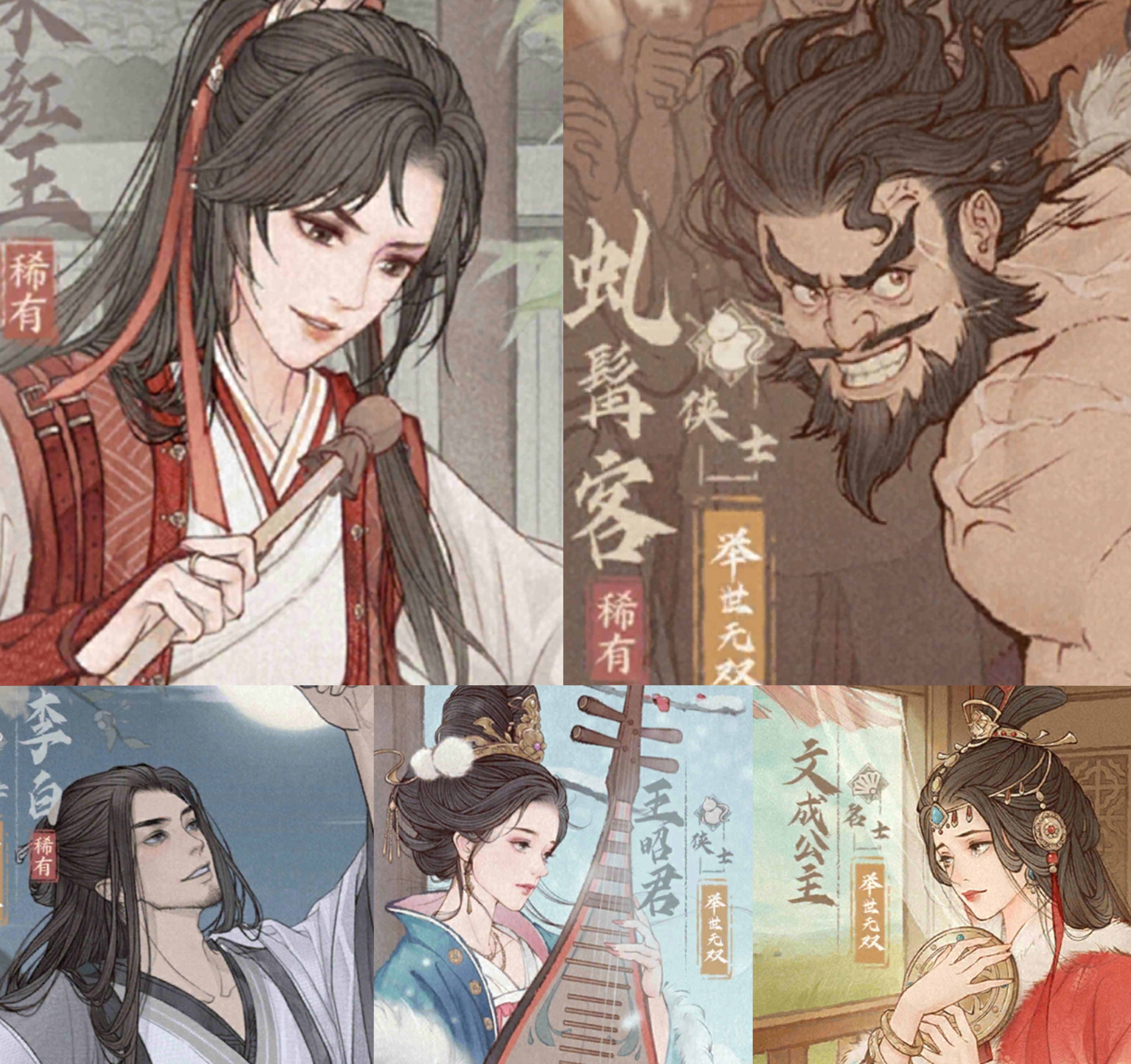 梁红玉+虬髯客+李白(核心)+王昭君(副c)+文成公主。