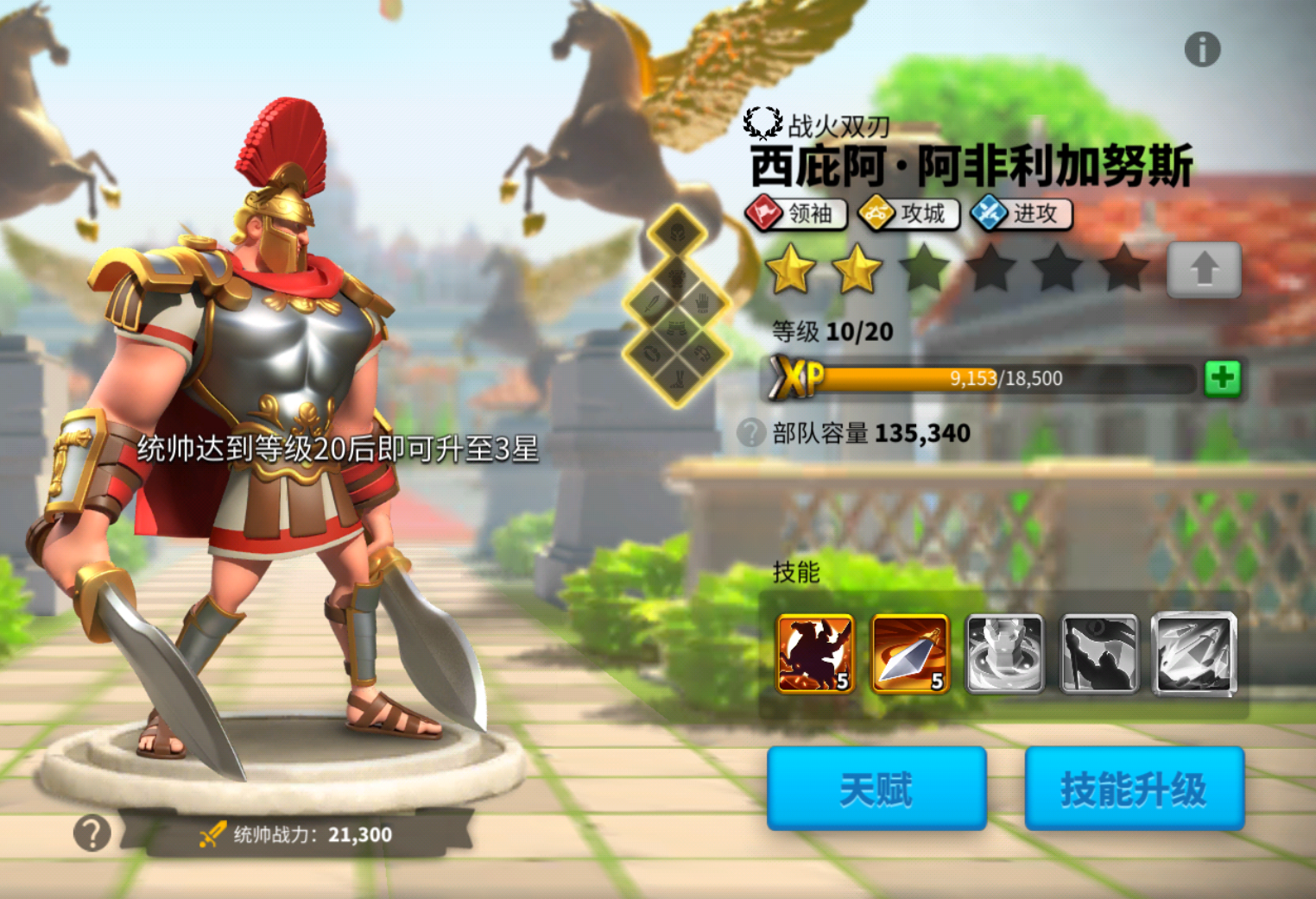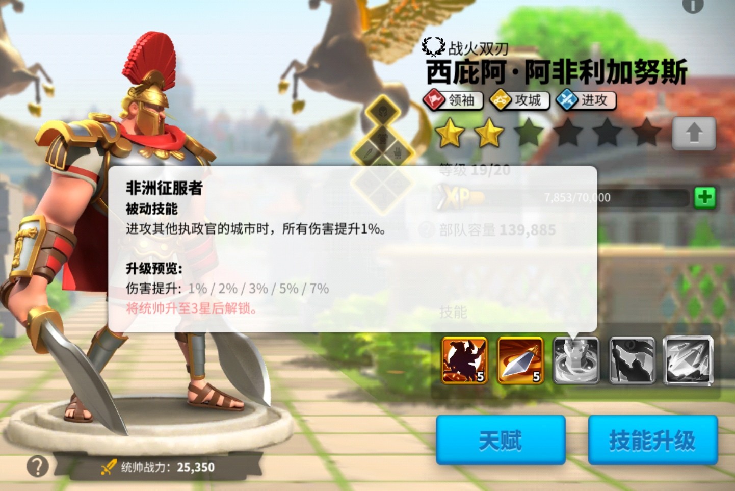 需要先将一技能升到满级才能充分发挥统帅的作用。