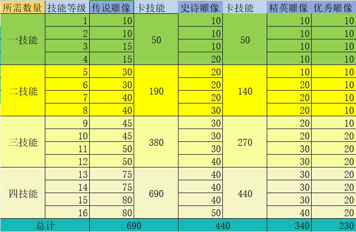 由于紫色橙色统帅升技能所需的雕像获取不易,而