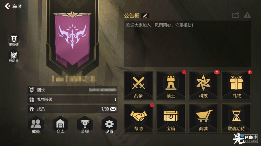 军团介绍:军团也是游戏社交重要的一个环节,毕竟是策略战争玩法嘛,肯定人多才好玩,在我们开荒到6级后就能加入军团了,也可以在频道问问有没有大佬收成员,毕竟有大佬罩着肯定更轻松嘛,军团的功能还是蛮多的,玩家可以通过互相帮助、完成任务、占领土地、研究科技、购买物资等一系列的操作,对于自身实力提升还是资源的获取都是巨大的,所以是建议玩家可以早点加入军团