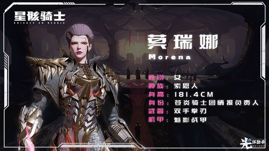 莫瑞娜随性不羁,但又心思缜密,行事干练。此次苍炎骑士团前往野原星,寻找启示录与克莱缇的任务,她也是随行者之一。在野原星外围,有覆盖了整颗星球的新联邦防御系统。莫瑞娜发现,攻击他们的能量非同小可,她这里却没有任何记载。看着外部不断攻击战舰的小型防御系统,莫瑞娜非常疑惑,到底是谁在操控防御指挥塔?