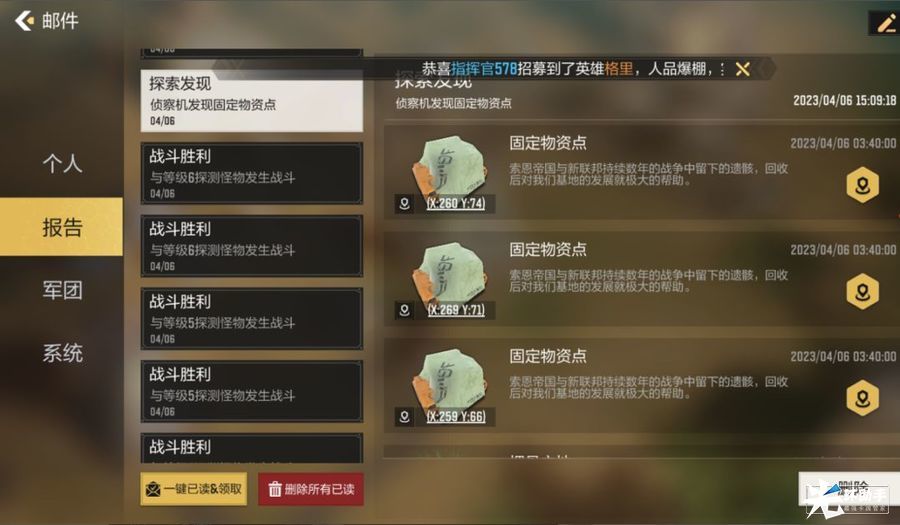 在无人机探索野外时,发现的物资将通过邮件向您告知,您可通过邮件对物资进行快速定位!