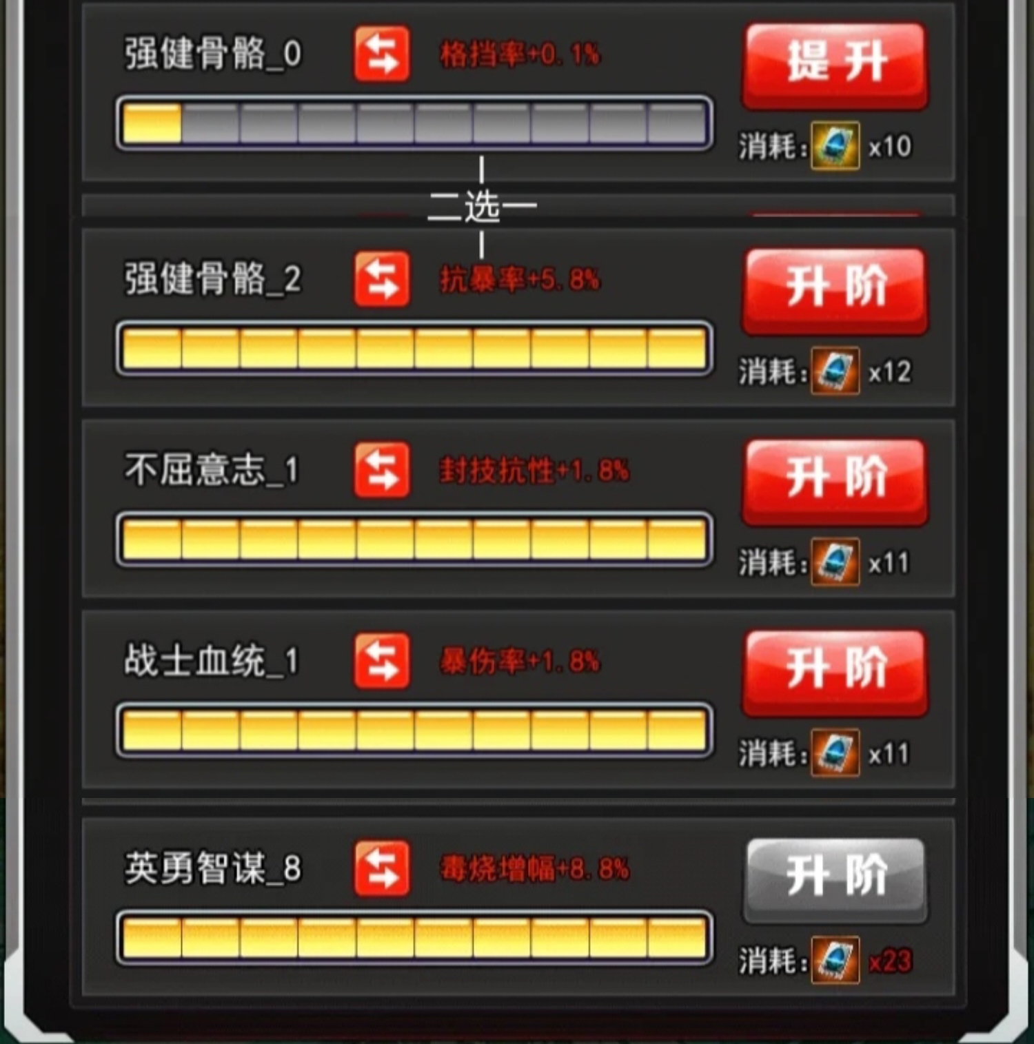 解析:简单来说就是光线吸收和能量吸收。既保证了坦度,又保证了续航,受到特级伤害降低30%可以叠加,这个叠加是没有上限的,只要两回合不过能叠多少算多少。后半段就是格挡回血,这个格挡回血对皇帝来说我觉得是非常重要的,所以修炼里面的格挡也要搞一搞,如果没有了吸血就相当于没有了续航如果要搞格挡回血的话,重伤抗性也要搞一搞