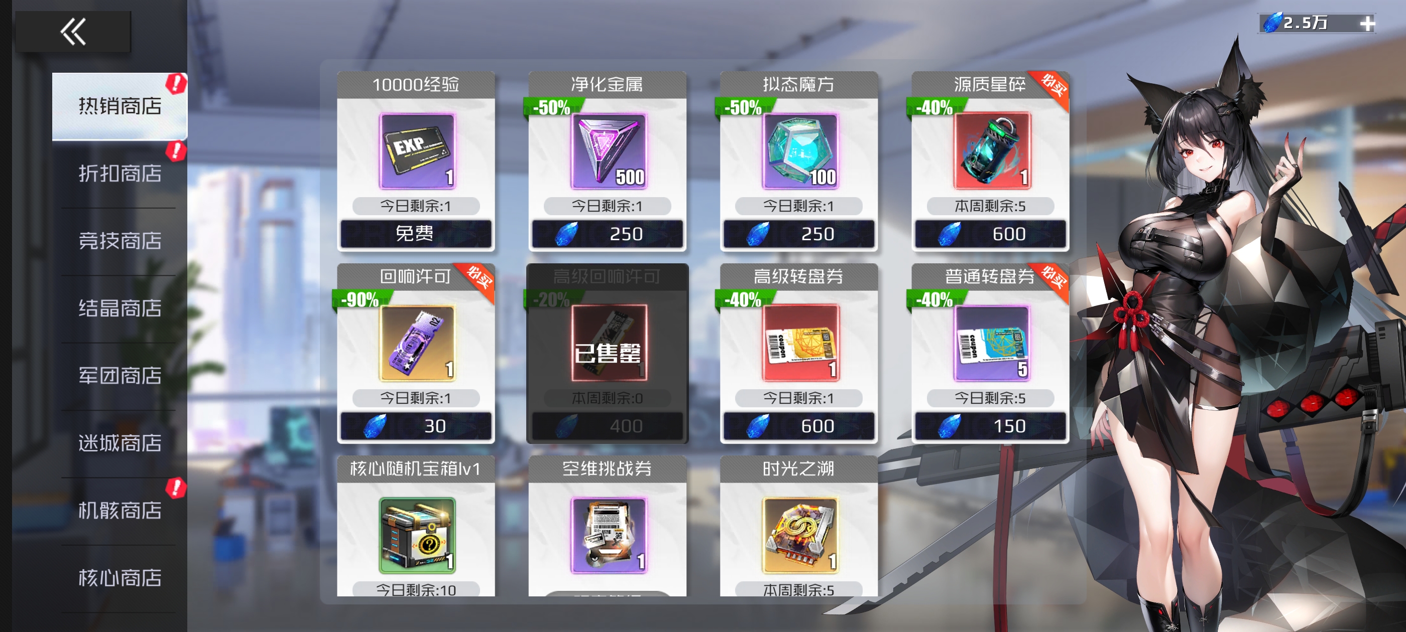 高级回响许可,源质星碎,回响许可,净化金属,两种转盘劵这些都可以购买。其中高级回响许可优先级最高,毕竟后面抽SSR+用的就是它,属于想要玩的久必买