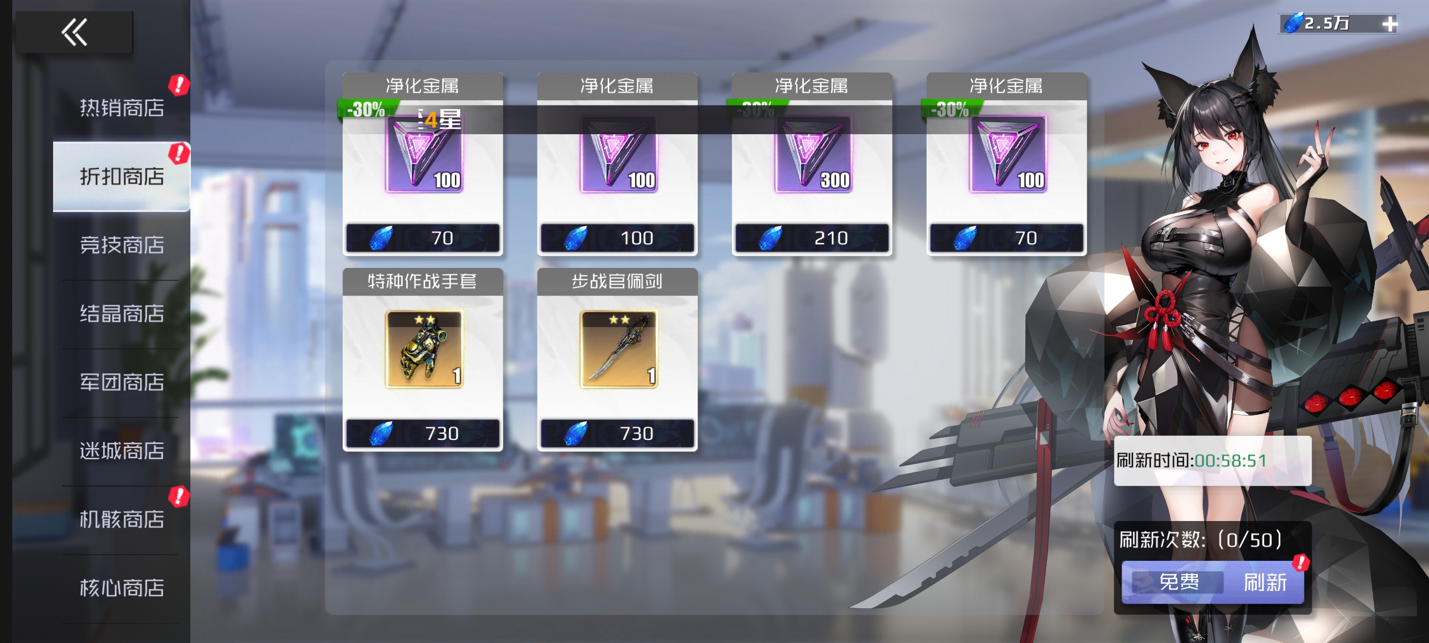 这里面只有50%*的净化金属最值得购买,其他30%*也可以接受,剩下的看看就好。游戏七天了的时候可以购买,因为可以完成七天乐任务和日常任务。