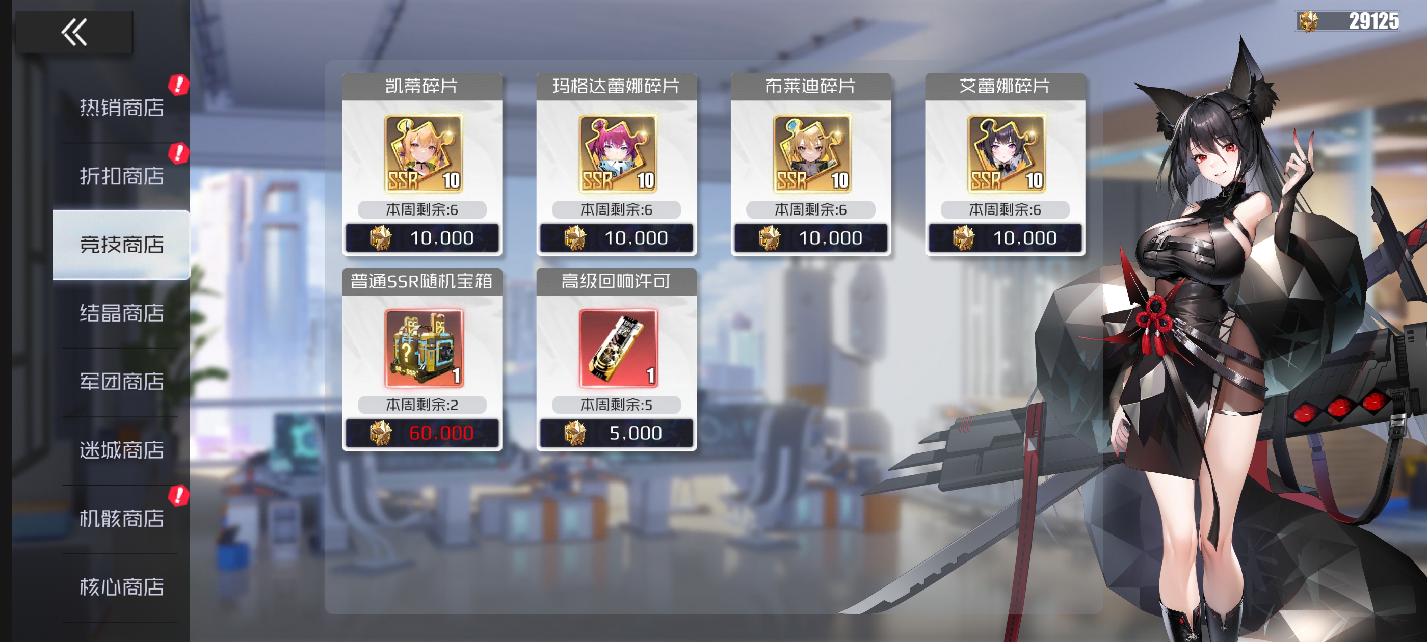 这个毫不犹豫直接优先购买高级回响许可,买完以后要考虑下下周能不能拿到,如果下周也够拿满五张高级回响许可,那可以考虑各阵营适合的碎片,竞技商店这四个在各阵营里面都有用处