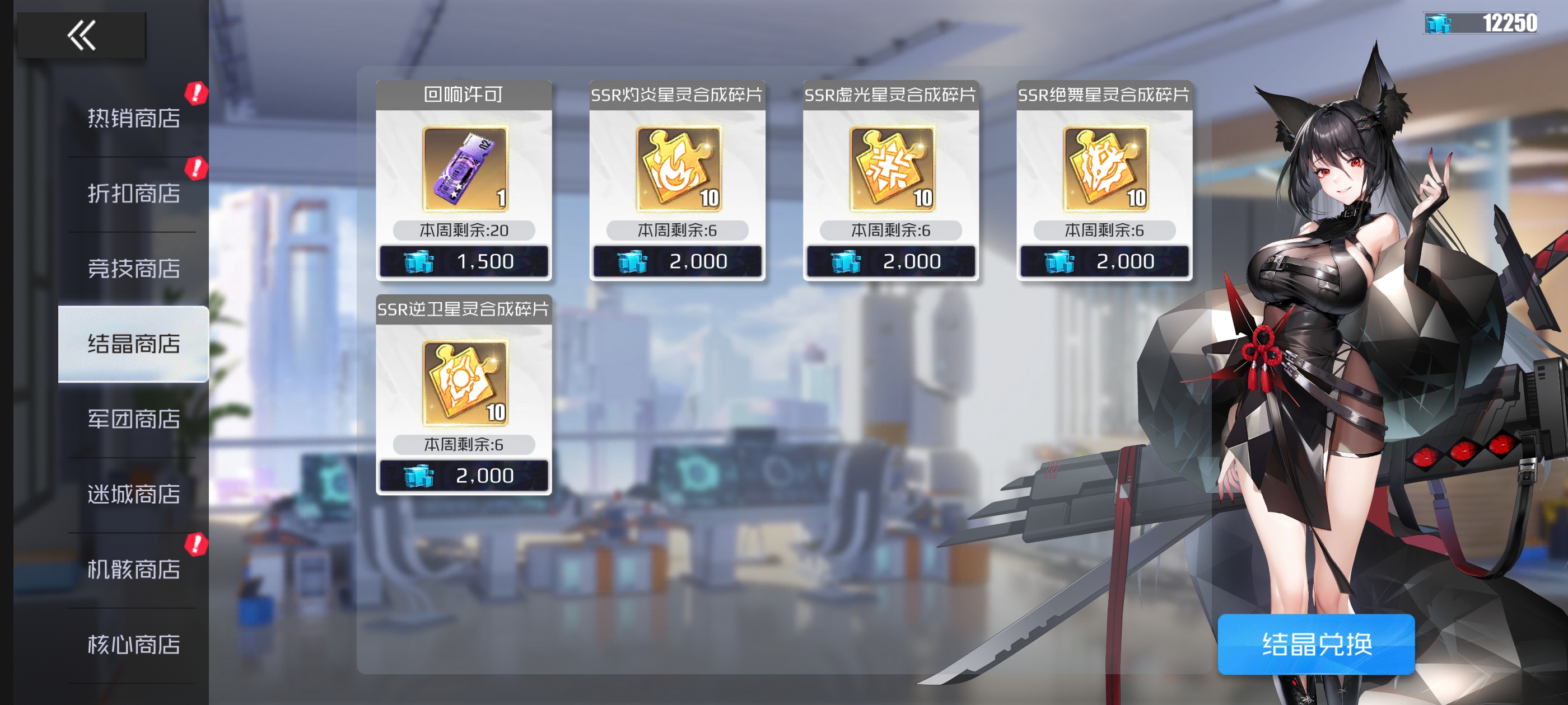 结晶商店的材料是靠溢出来的多余角色碎片兑换出来的,我个人推荐优先把每周的回响许可换满,然后在考虑各阵营的其他碎片。原因是因为这个买了去抽是可以获得多余角色碎片的,而且这个游戏是有心愿单的存在,比直接赌角色碎片要好很多。