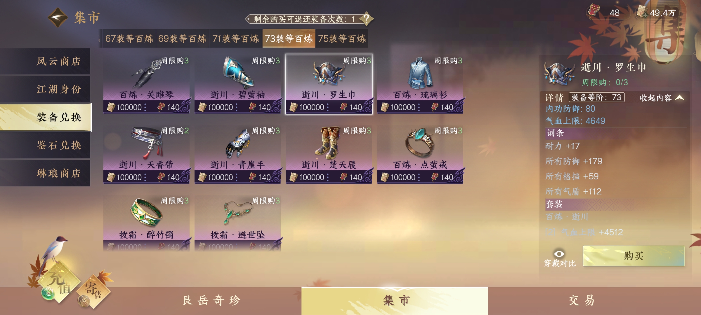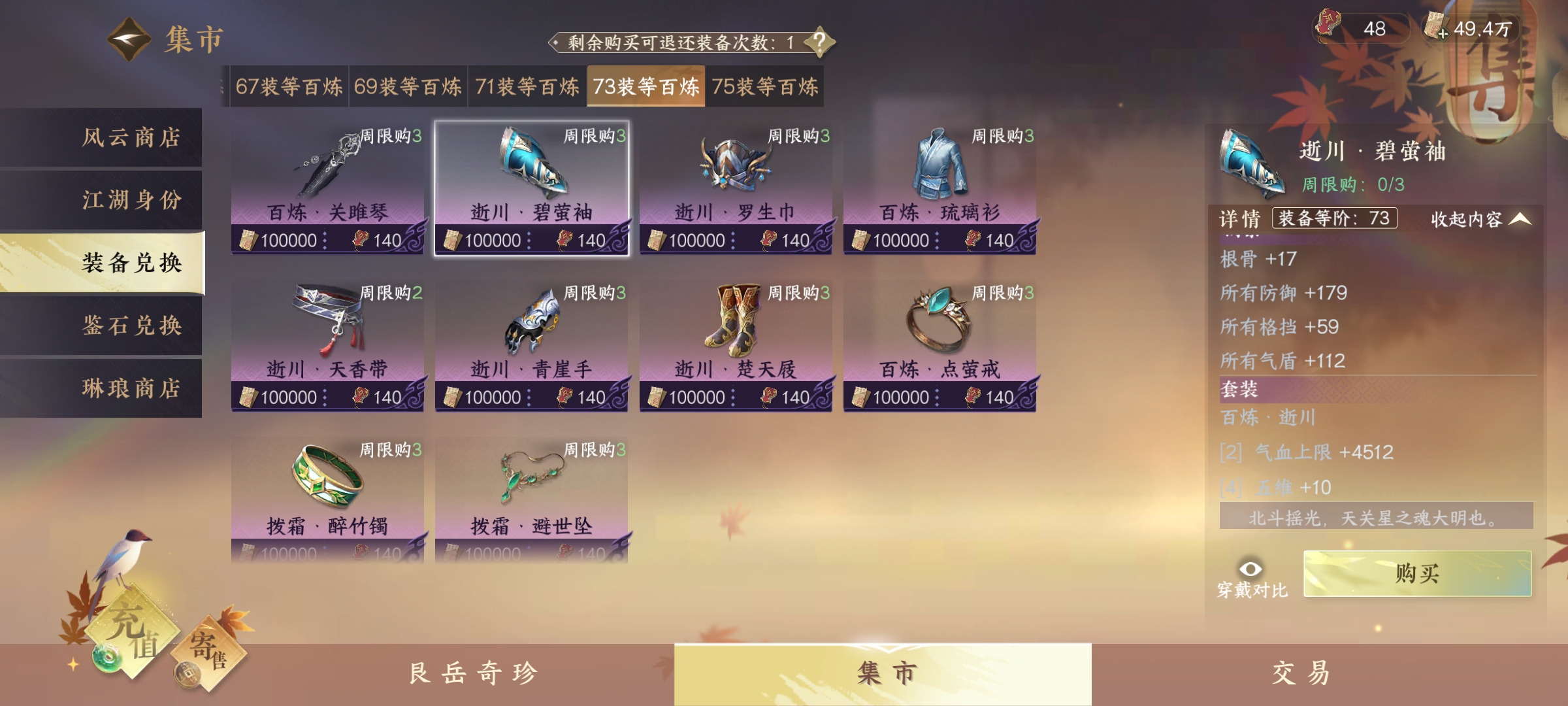 所以这个星期先不兑换首饰,用2件73防具怼到4件套拿到10点全属性!