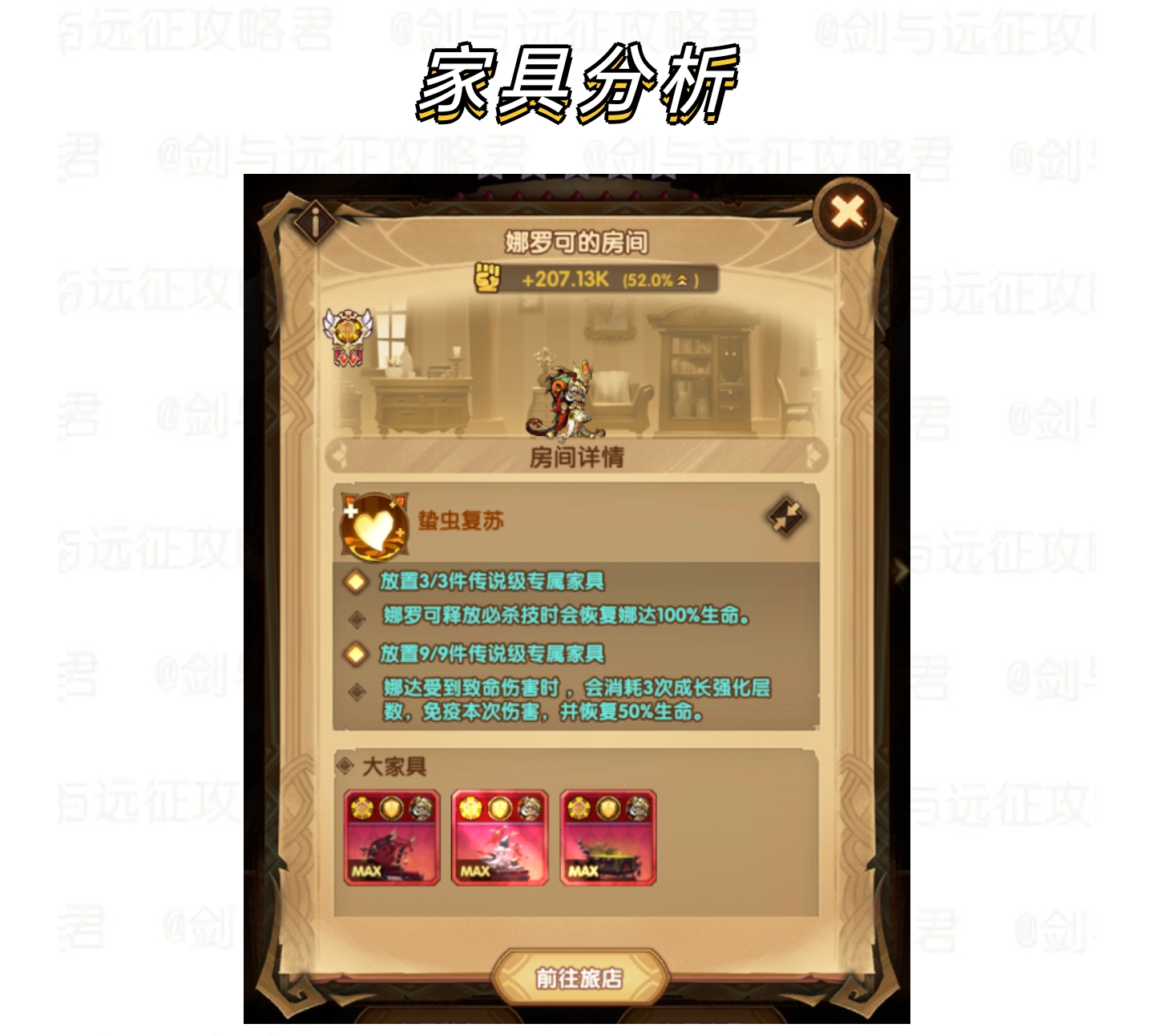 战斗开始时,大虫子会一同进场,大虫子每受到伤害时,会为我方英雄恢复治疗量。