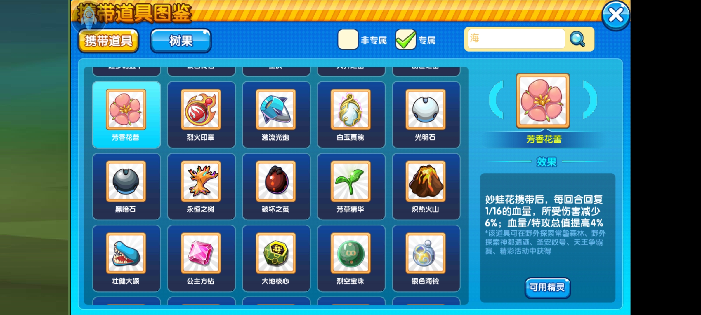 首先来说专属道具:芳香花蕾每回合回复1/16的血量,所受到的伤害-6%,血量和特攻+4%。