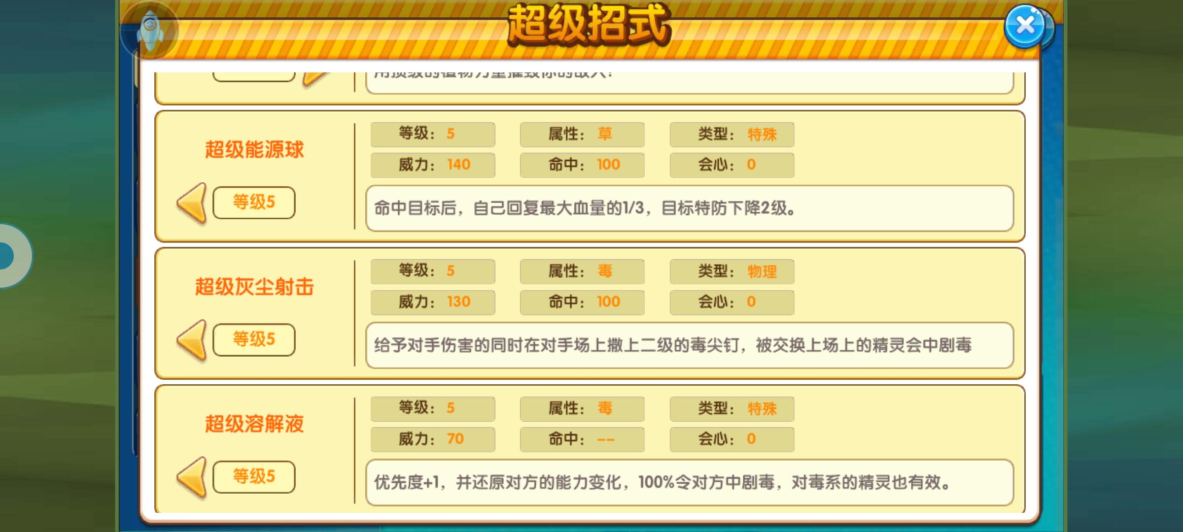 不过如果开建议只开超级溶解液,超级溶解液的优点是先手!可以还原对手的强化属性。并且可以使毒系宠物中毒,满级后70威力优先度+1,并还原对方的能力变化可以用于收割和阻止强化。但是现在一个队伍吃大招的宠物很多,每场战斗只能选择一种,所以建议还是祝福系统加成稳定。