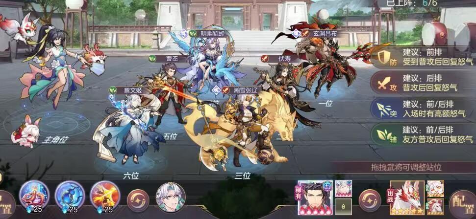 早期开荒常用的张辽后宫,用低星魂将+果园组合,在前期PVE和PVP中都有不错表现,燎原火和小孟作为强力选手替代原来的二傻或低星孙鲁班孙鲁育,帮助队伍快速度过前期,一图为前期过渡阵容,二图为中期转型阵容,三图为后期成型阵容。