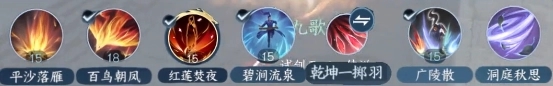 接碧涧流泉,碧涧流泉一段六节打完先别用二段,先用乾坤一掷,然后再用二段。广陵散刷风,起个洞庭秋思,接着平沙落雁,百鸟朝凤,五火,尽量触发炽热,接着乾坤一掷碧涧流泉等,期间使用碧涧流泉的时候可以调整自己的位置,使用百鸟一定要拉开距离,拉开距离伤害高,期间触发炽热,有什么爆发技能就接什么爆发技能,打虎可以卡冷却时间。