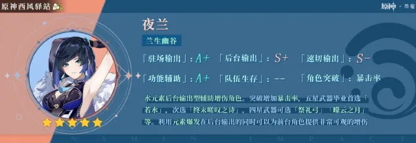 「兰生幽谷·夜兰」强度指标:★★★★★