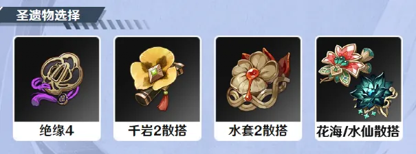 其他套装如「绝缘之旗印」「昔日宗室之仪」也是不错的选择。没有特别严格的圣遗物套装需求,突出一个有啥用啥。