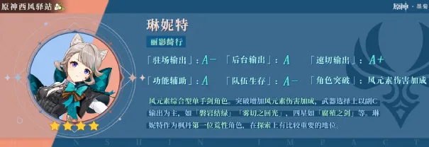 突破增加「风元素伤害加成」,对琳妮特主要输出方式“战技/爆发”有不错的提升。
