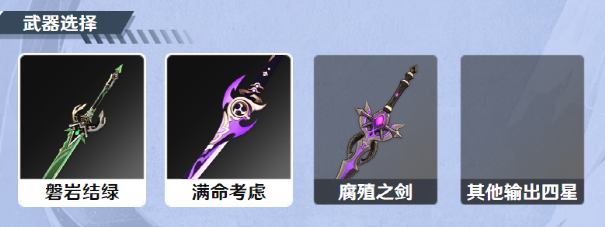 武器选择上——「磐岩结绿」:输出单手剑的通用武器。