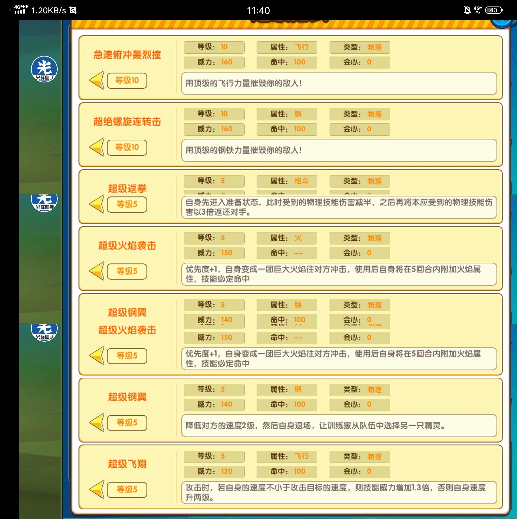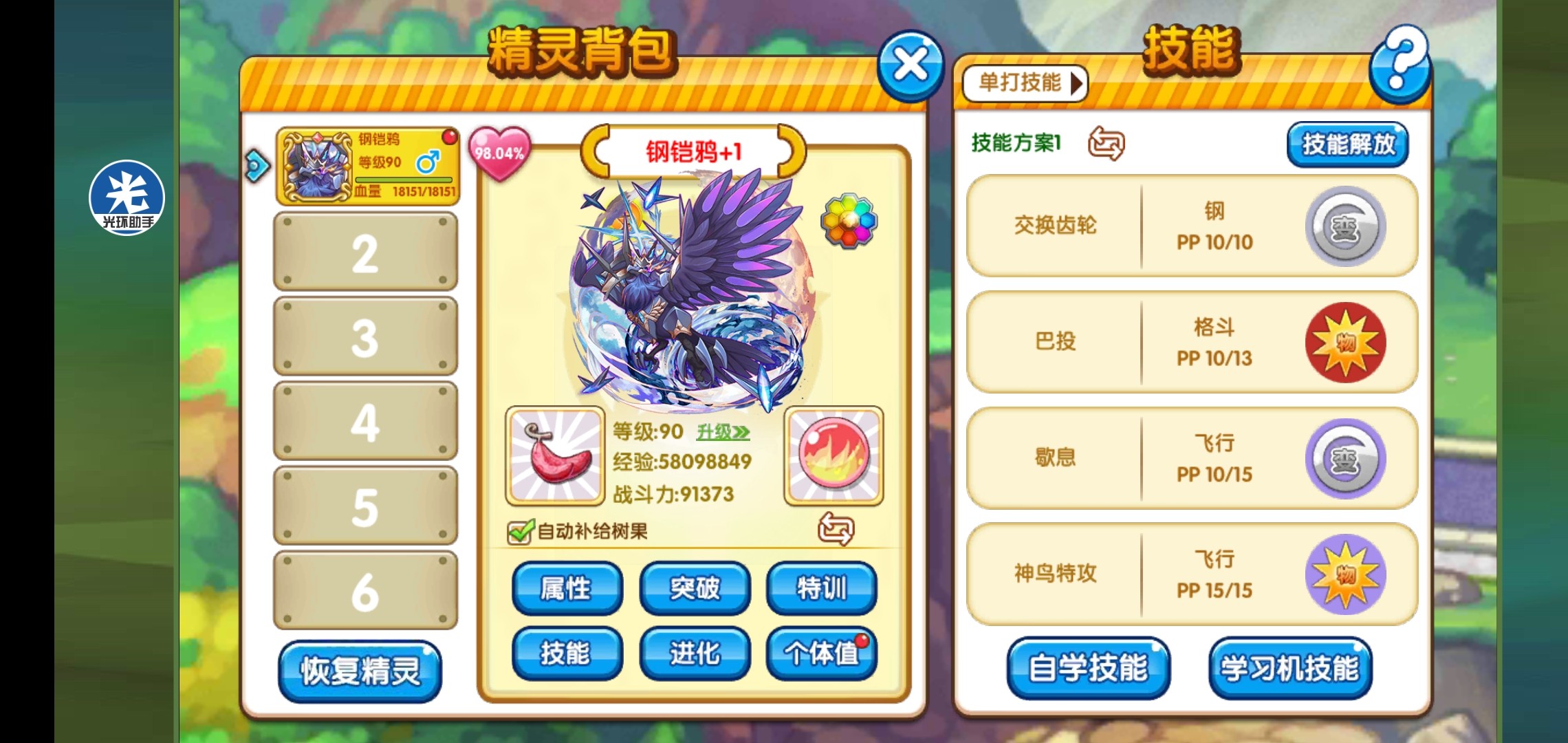 这个配置也是目前钢铠鸦的基本配置,几乎所有的技能都可以找到,其中歇息是必带,这个可以帮助它回血续航,对它非常重要,强化技能有两个,这里我推荐后期用交换齿轮,前期用集气,交换齿轮强化快速,搭配特性,一回合就能让它速度+2、攻击+2,防御+1,而两回合攻击就可以达到四级,速度也可以达到四级,妥妥的一速,但是单纯论暴力程度,却是没有集气后暴击+物攻叠加的伤害高,前期能赖的回合多,所以前期能叠加buff的机会也更多。输出方面这些技能就根据玩家的选择搭配了。