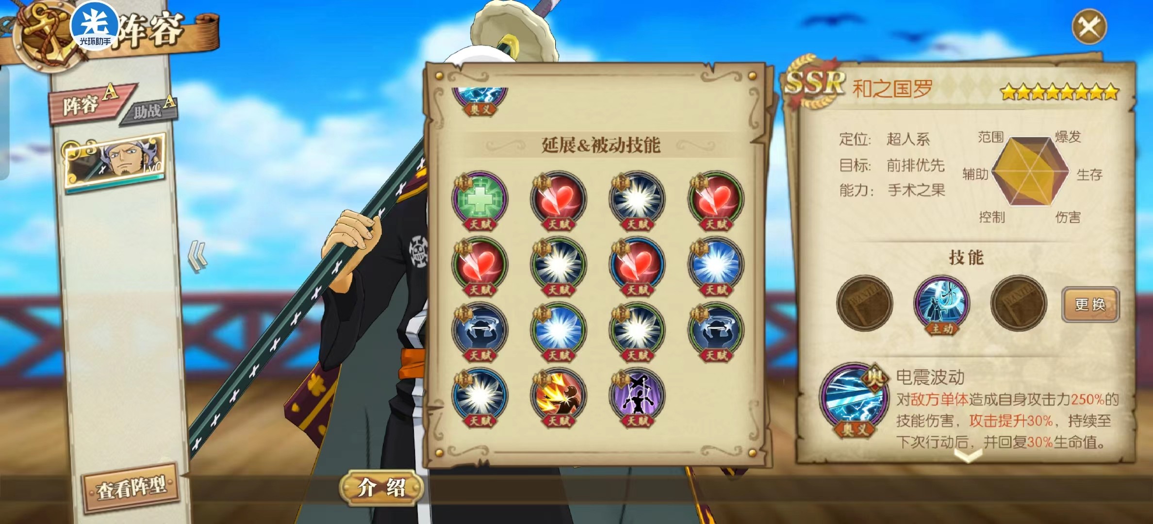 先来看看和之国罗的技能,罗的技能比较好玩,技能有多种搭配,可以回血反弹流,还能爆炸输出流