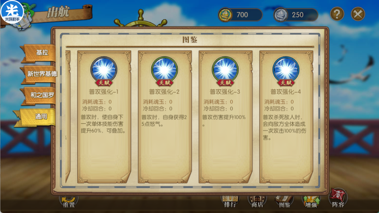 普攻强化:普工强化是输出罗必备的技能之一,必须要拿到这个加25怒气的BUFF