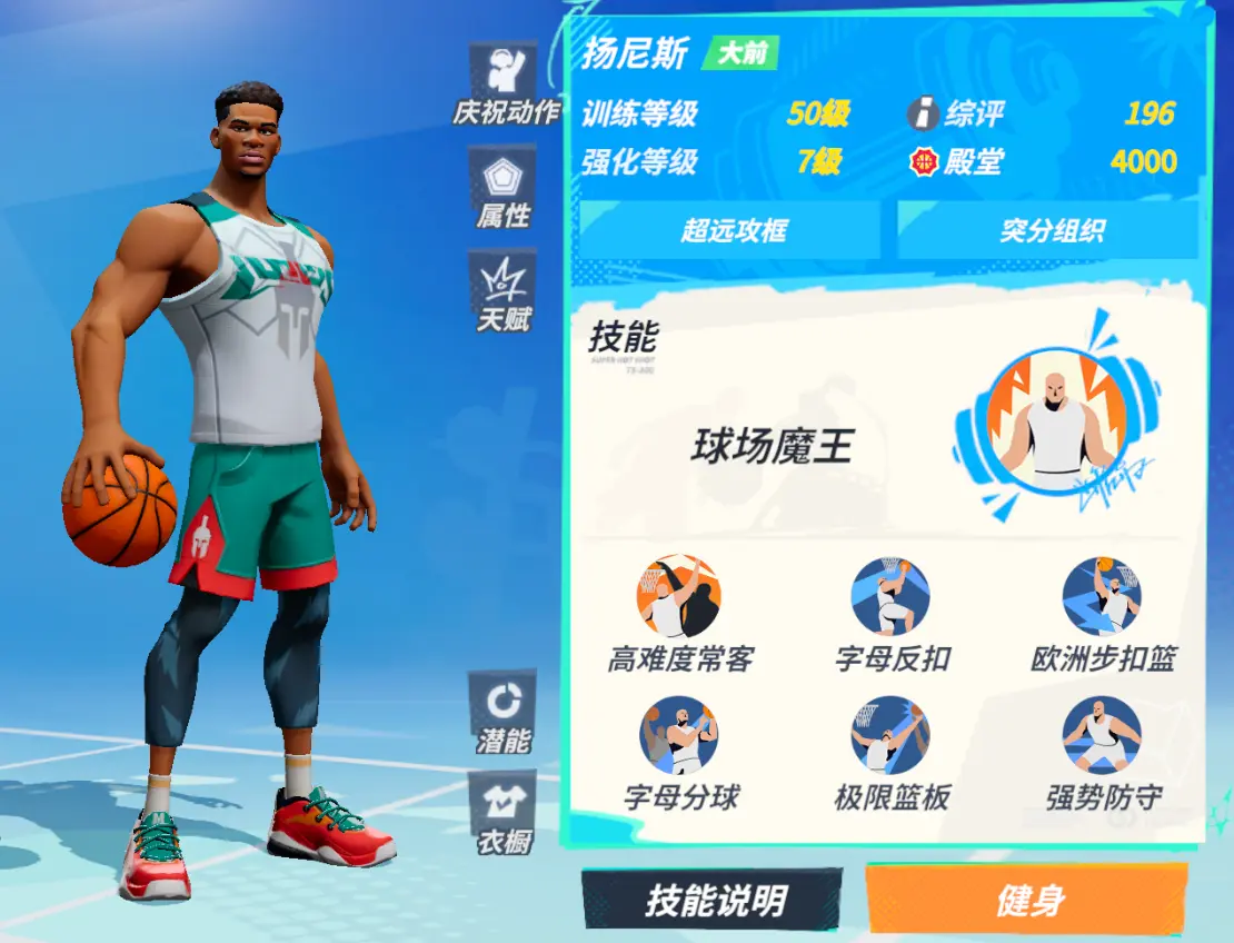 该潜能主要提升扬尼斯的扣篮能力,其次提升力量和弹跳,让球员内线进攻能力更强。