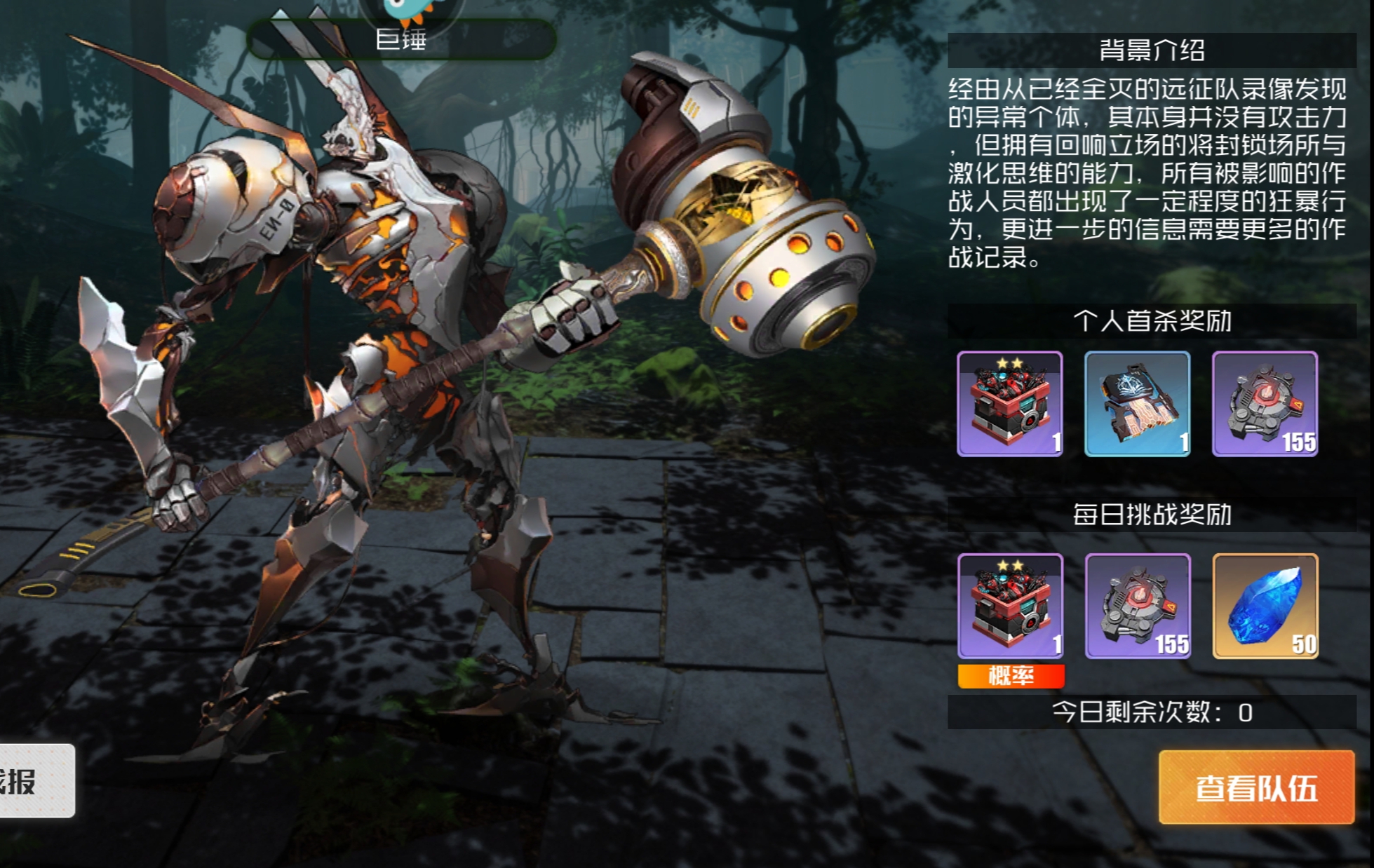 注意每天每个人都有3次挑战恶神boss的次数。挑战完以后加入别人的队伍帮助挑战,可以获得【机骸】奖励。