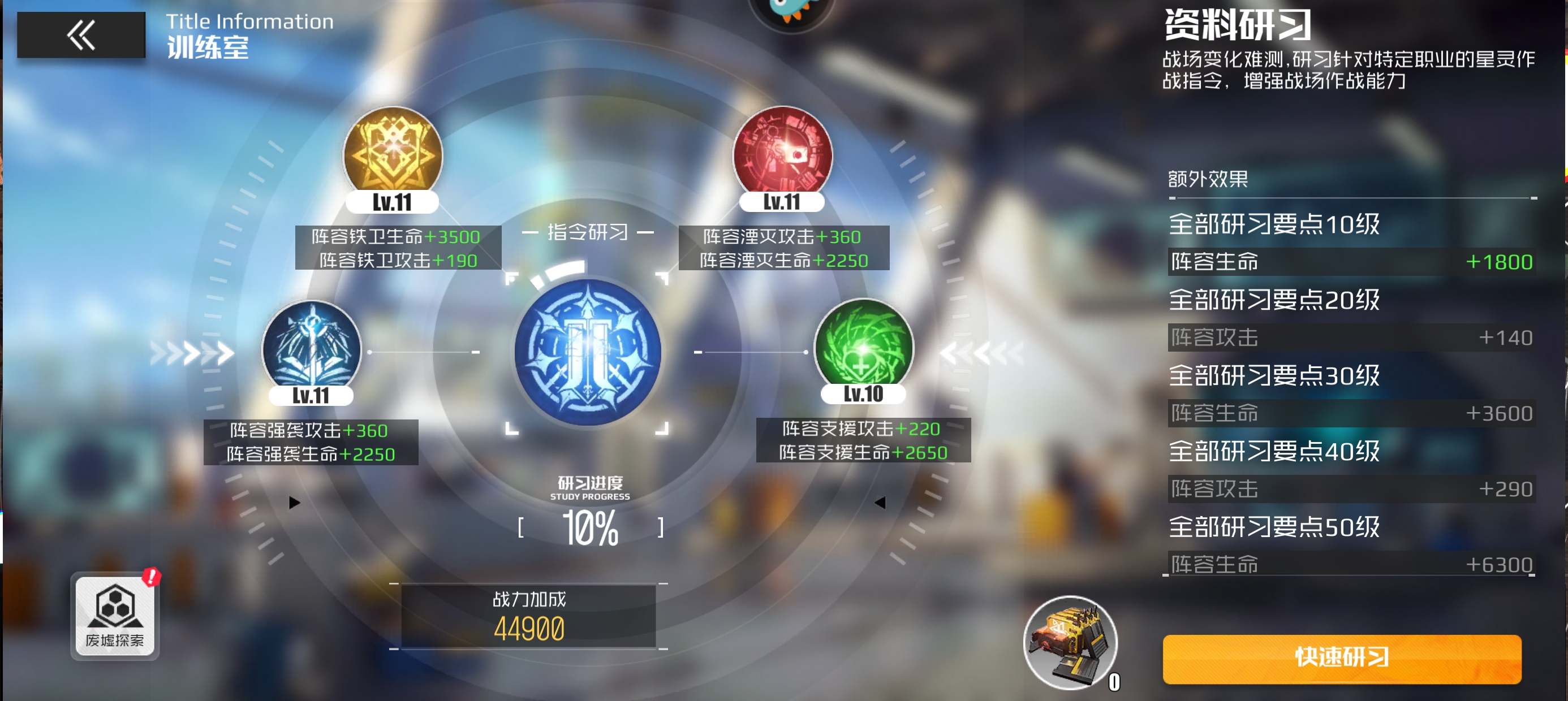 【专精】就是加强阵营,而【训练室】就是加强职业。