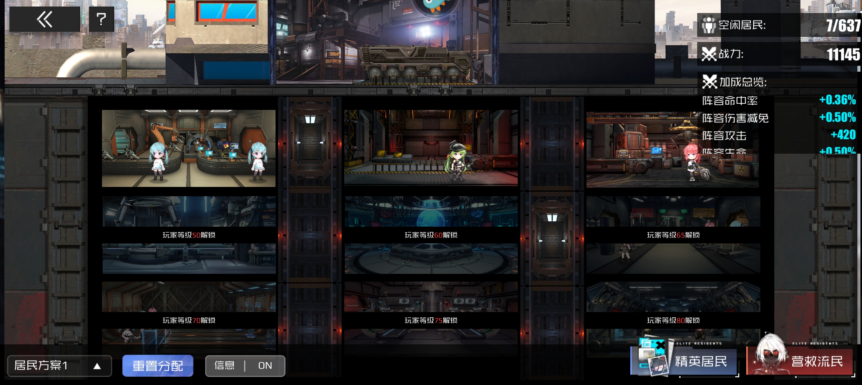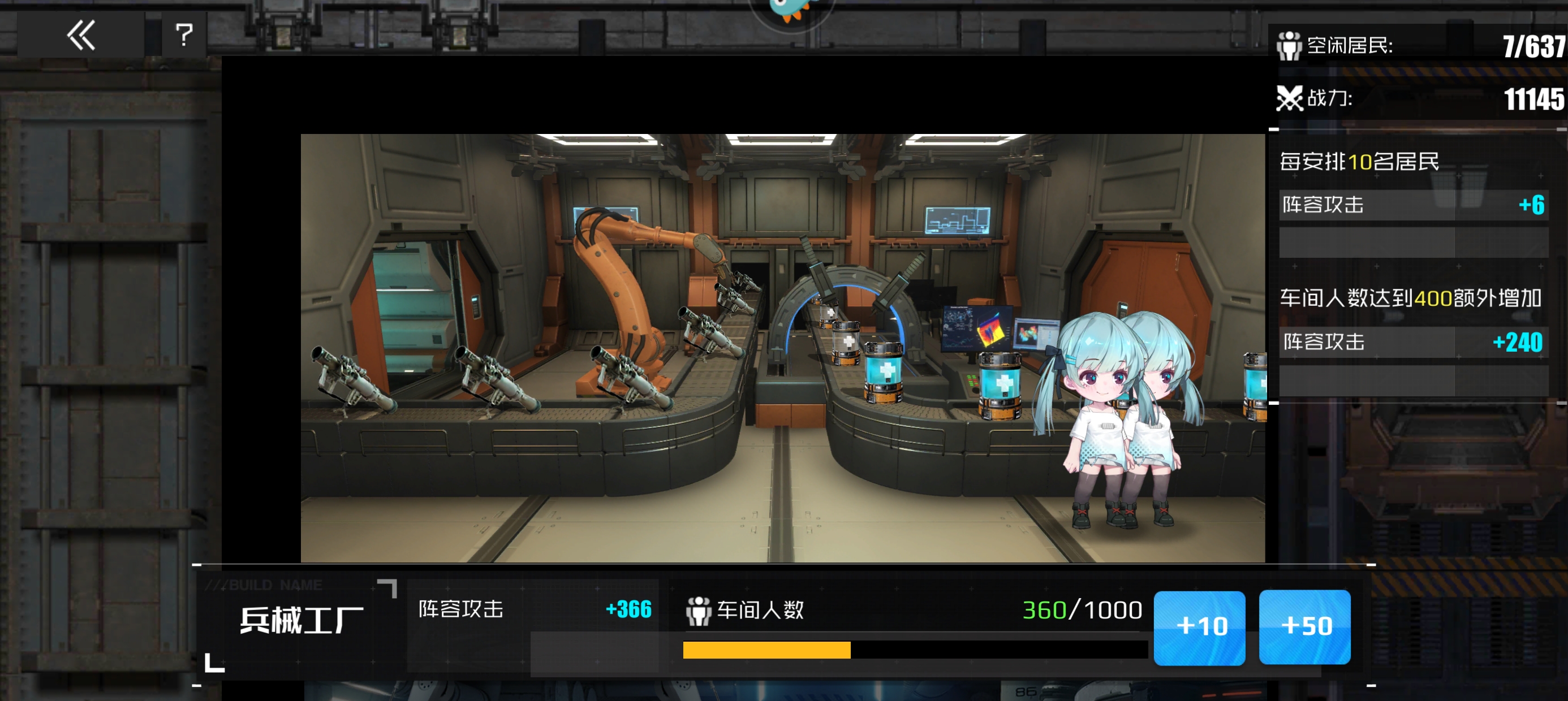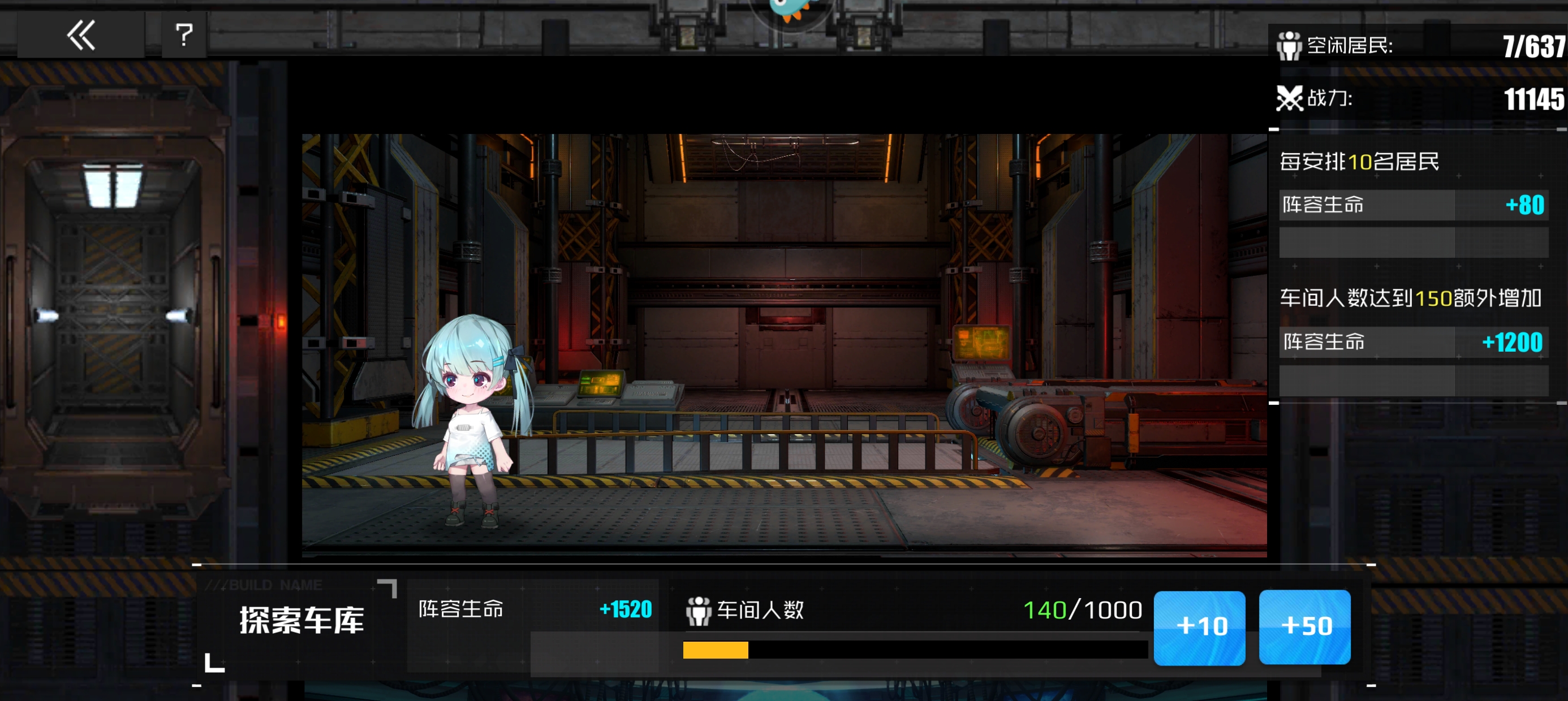 居民系统是可以提高我们战斗力的地方,我们通过居民玩家获得的【流民】可以入住车间来提高队伍战斗力。