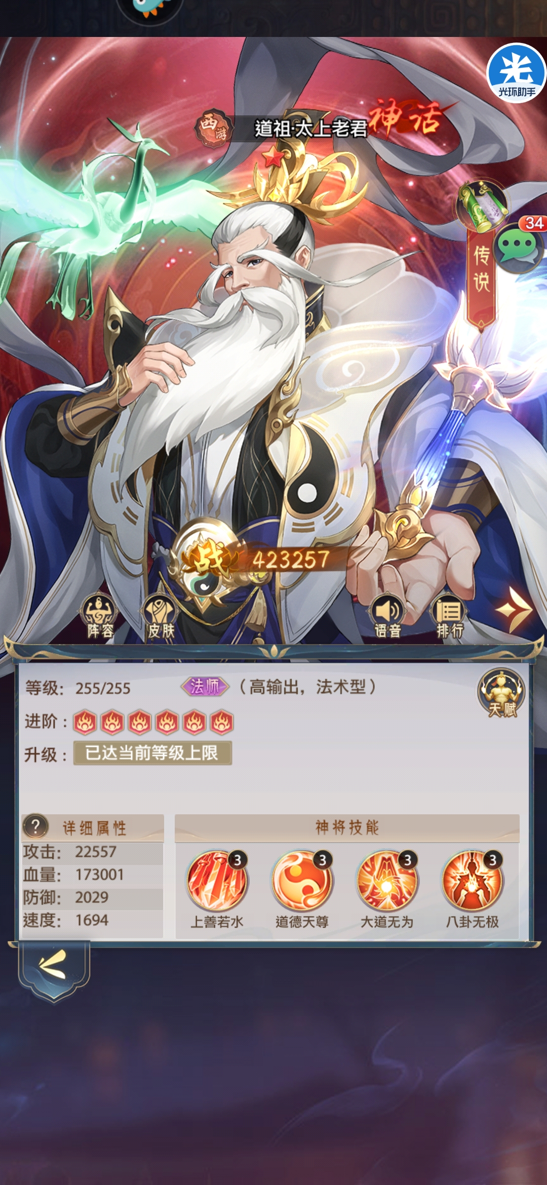 辅助型武将,西游毒控阵容核心武将,太上老君拥有超强面板加成,作为援军可以给西游武将提供面板加成,上阵可以抽取敌方属性,拉开双方面板差距保证己方优势;同时被动叠加一定次数淬毒可额外控制一次,控场能力较强,拉开双方出手差距,消耗能力极强