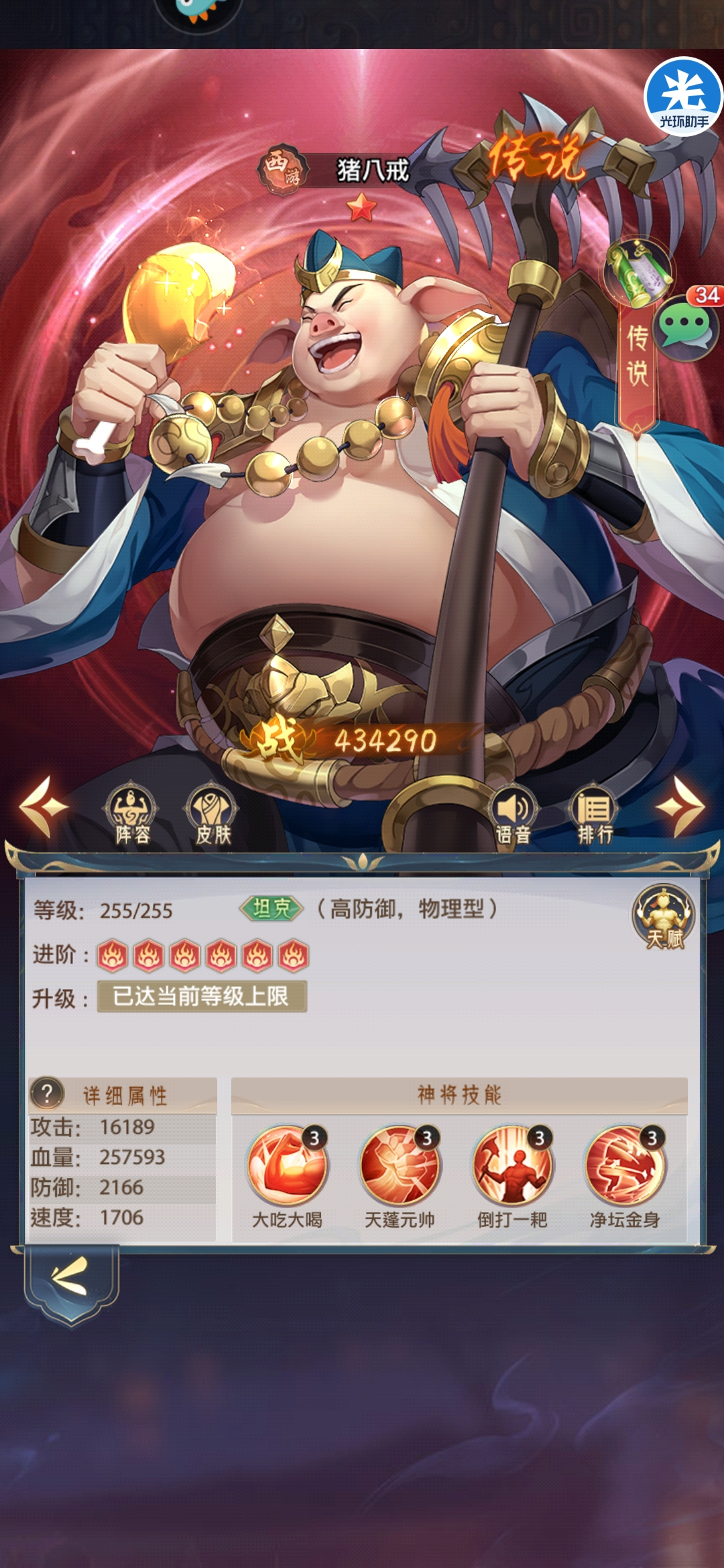 增益型辅助,拥有不错的生命和伤害提升,可以保证己方阵容输出和生存能力;技能可以保护己方主力,降低伤害+分摊伤害+清除负面效果可以大幅提高主力生存能力保证主力极佳的输出环境,但猪八戒必须多核成型上阵,前期效果不明显,如果光环武将坦度不高,额外分摊伤害反而会有负提升